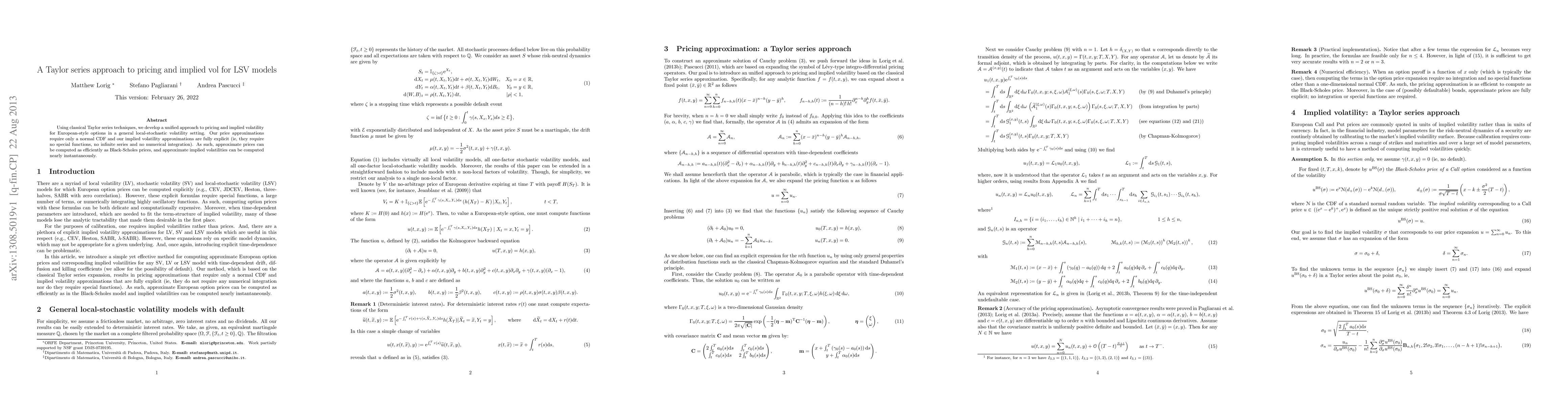 This paper presents a Taylor series method for efficiently pricing European-style options and computing implied volatilities in local-stochastic volatility models, requiring only a normal CDF and providing fully explicit approximations without special functions or numerical integration.