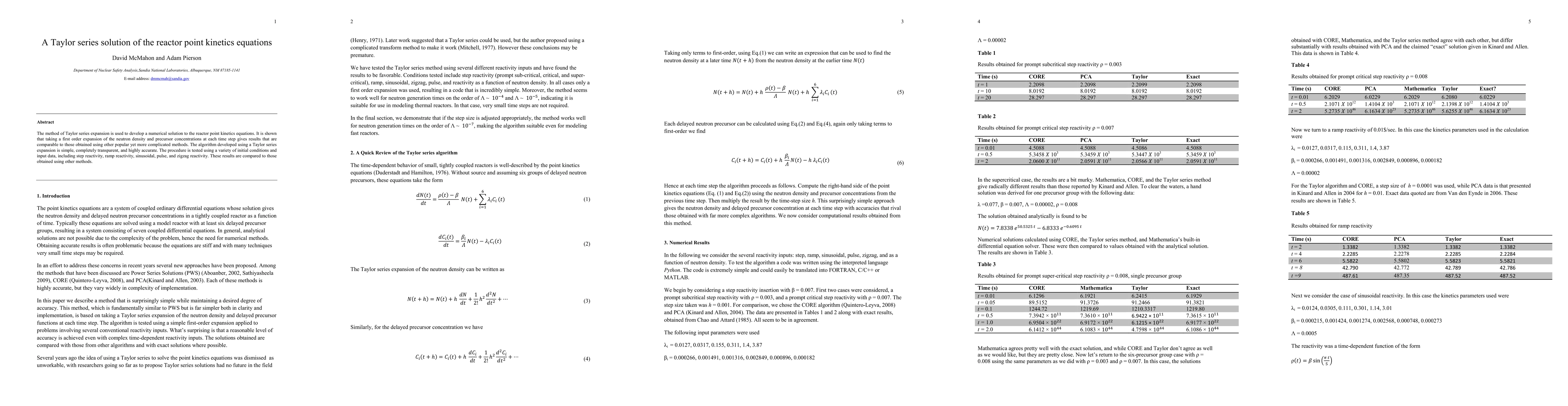 This paper develops a Taylor series expansion method to numerically solve reactor point kinetics equations, demonstrating its simplicity, transparency, and high accuracy. Comparative tests against other methods show comparable results under various reactivity profiles.