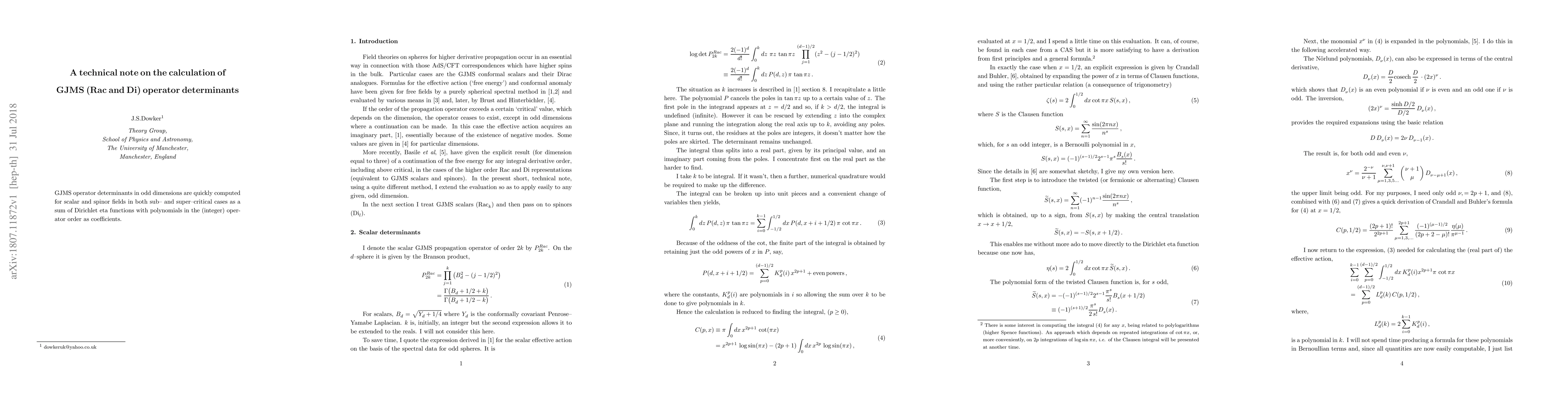 Summary: This technical note presents a method for rapidly calculating GJMS operator determinants in odd dimensions for scalar and spinor fields, expressed as sums of Dirichlet eta functions with polynomials in the operator order. The approach applies to both sub- and super-critical cases.