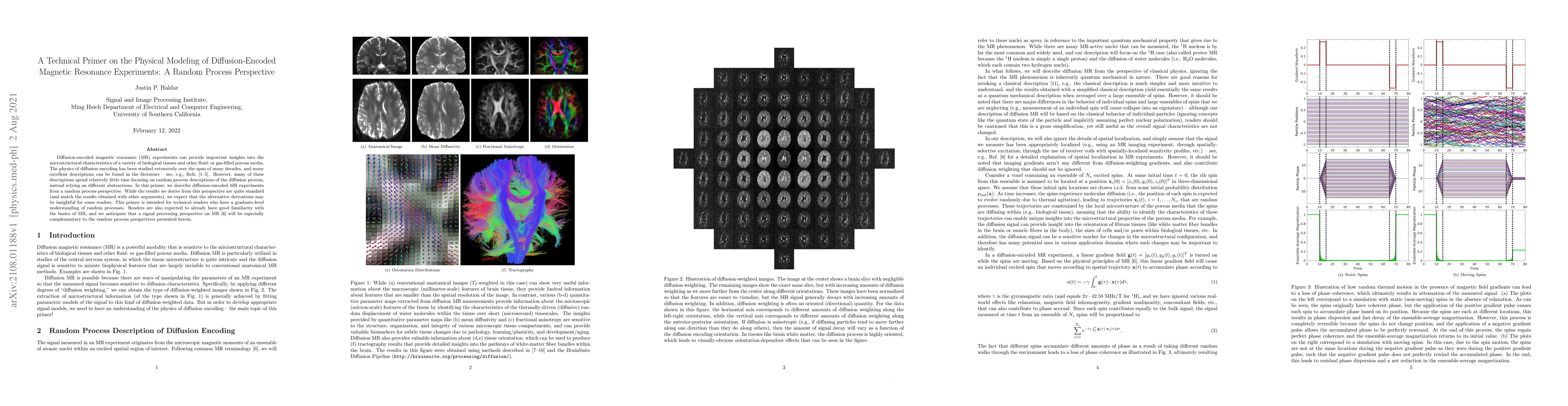 Diffusion-encoded magnetic resonance (MR) experiments can provide important insights into the microstructural characteristics of a variety of biological tissues and other fluid- or gas-filled porous media. The physics of diffusion encoding has been studied extensively over the span of many decades, and many excellent descriptions can be found in the literature -- see, e.g., Refs. [1-5]. However, many of these descriptions spend relatively little time focusing on random process descriptions of the diffusion process, instead relying on different abstractions. In this primer, we describe diffusion-encoded MR experiments from a random process perspective. While the results we derive from this perspective are quite standard (and match the results obtained with other arguments), we expect that the alternative derivations may be insightful for some readers. This primer is intended for technical readers who have a graduate-level understanding of random processes. Readers are also expected to already have good familiarity with the basics of MR, and we anticipate that a signal processing perspective on MR [6] will be especially complementary to the random process perspectives presented herein.
