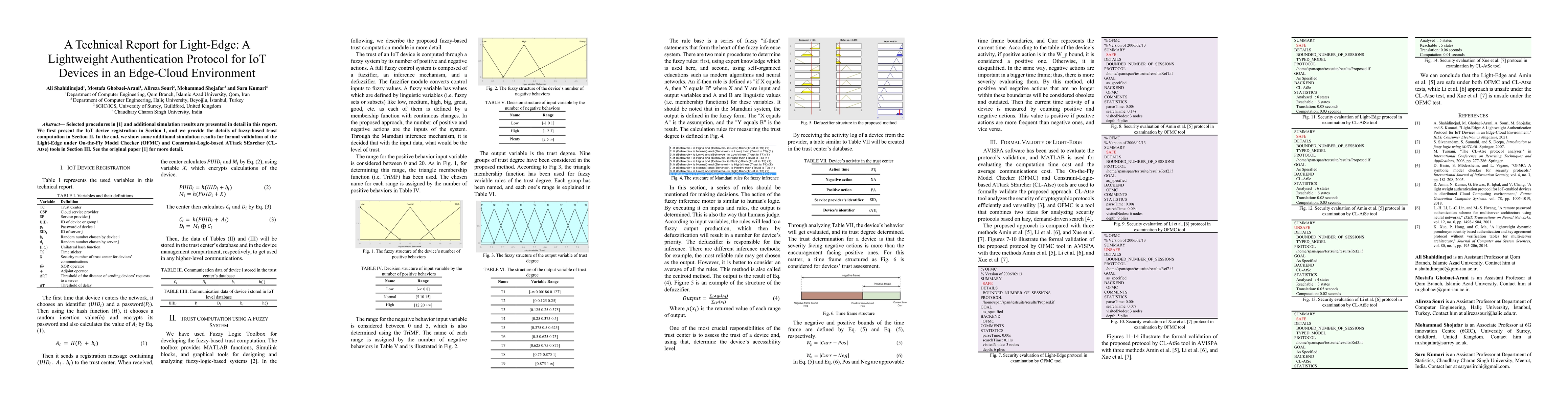 Selected procedures in [1] and additional simulation results are presented in detail in this report. We first present the IoT device registration in Section I, and we provide the details of fuzzy-based trust computation in Section II. In the end, we show some additional simulation results for formal validation of the Light-Edge under On-the-Fly Model Checker (OFMC) and Constraint-Logic-based ATtack SEarcher (CLAtse) tools in Section III. See the original paper [1] for more detail.
