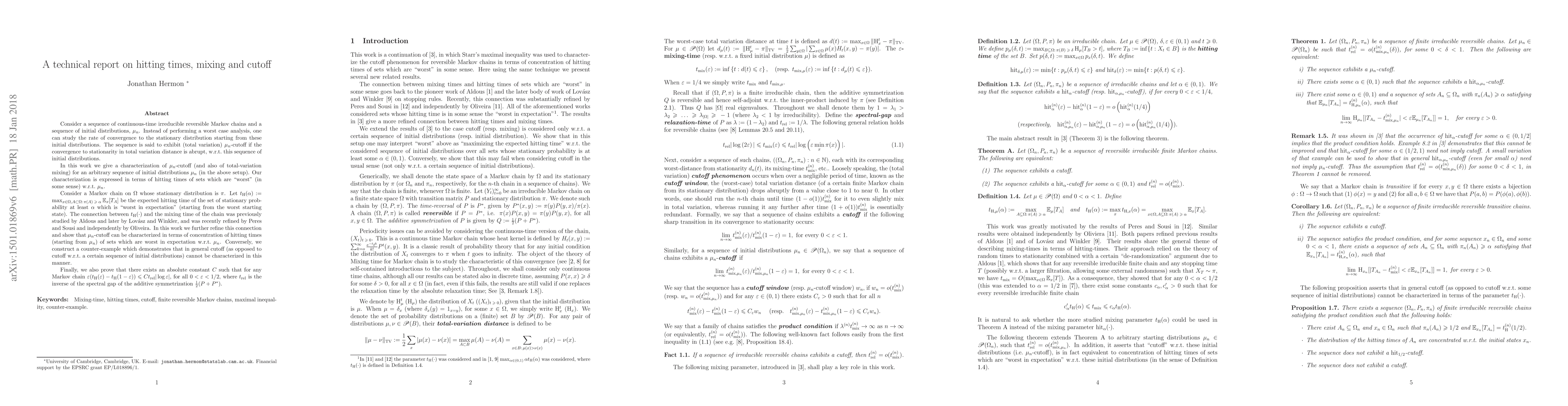 This research paper characterizes $eta$-cutoff for Markov chains in terms of hitting times of worst sets and refines the connection between mixing time and cutoff. It also shows that cutoff cannot be characterized by focusing on a specific sequence of initial distributions.