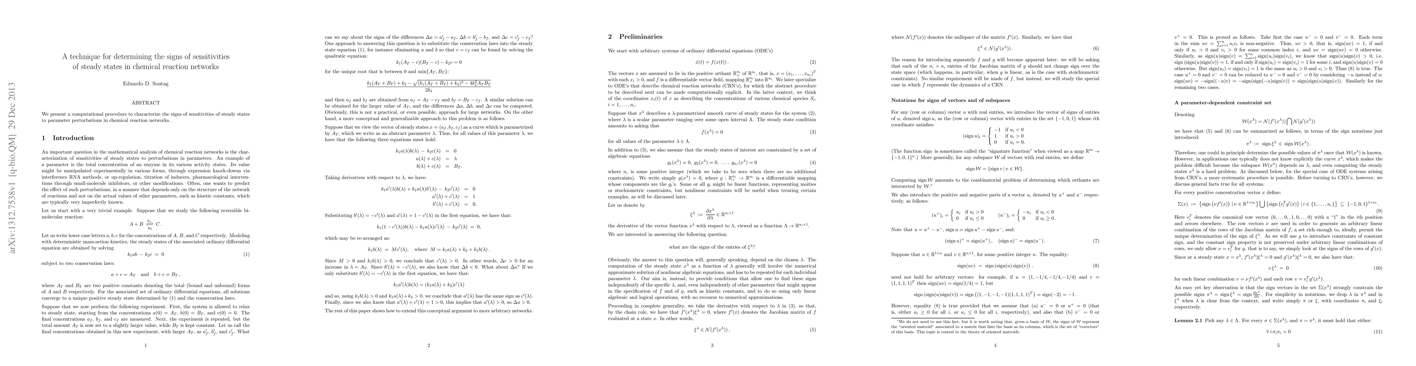 We present a computational procedure to characterize the signs of sensitivities of steady states to parameter perturbations in chemical reaction networks.