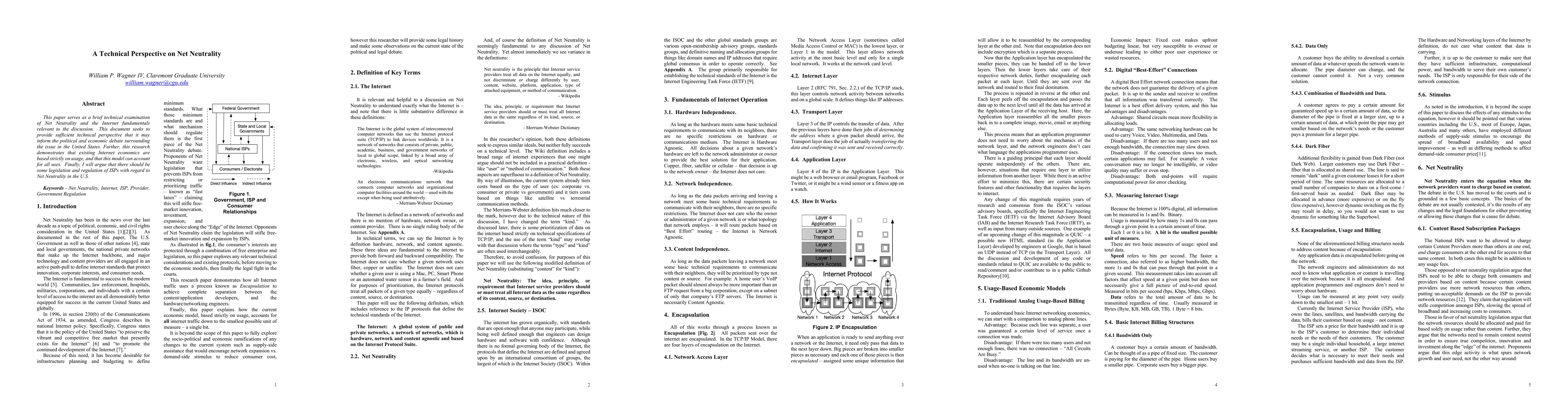 This paper serves as a brief technical examination of Net Neutrality and the Internet fundamentals relevant to the discussion. This document seeks to provide sufficient technical perspective that it may inform the political and economic debate surrounding the issue in the United States. Further, this research demonstrates that existing Internet economics are based strictly on usage, and that this model can account for all uses. Finally, I will argue that there should be some legislation and regulation of ISPs with regard to Net Neutrality in the U.S.