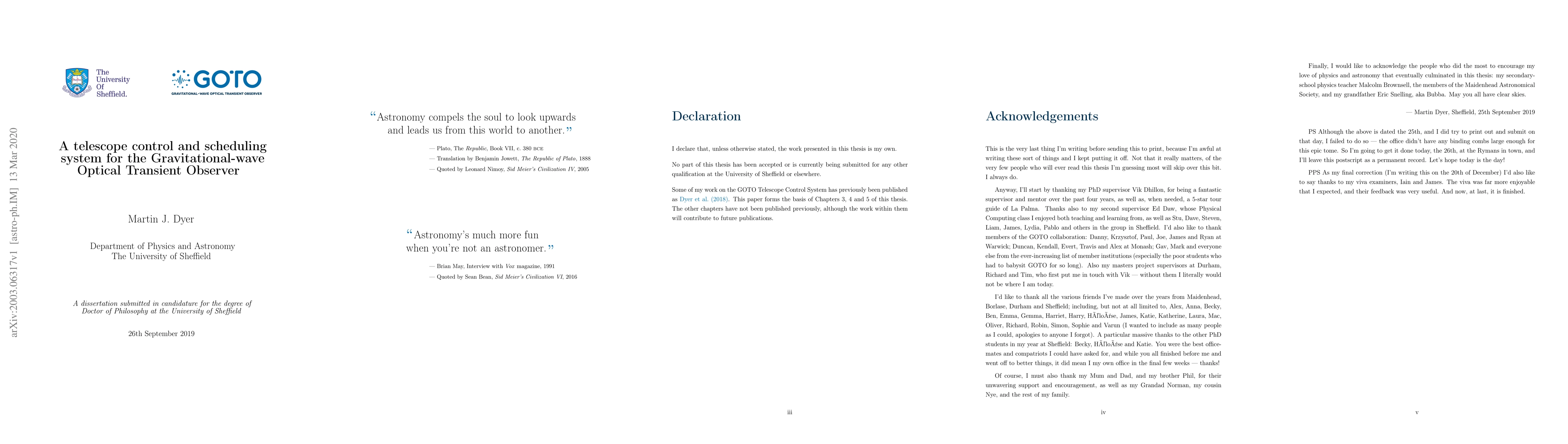 This thesis presents a telescope control and scheduling system for the Gravitational-wave Optical Transient Observer (GOTO), enabling autonomous hunting of elusive sources, and outlines plans for a global observatory with multiple robotic telescopes.