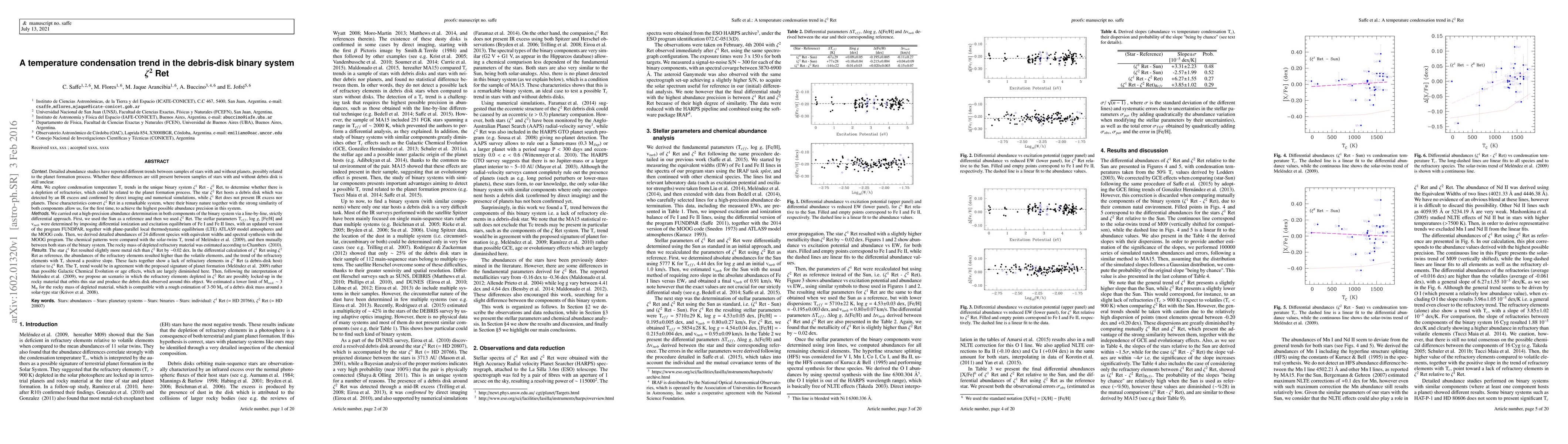 We explore condensation temperature Tc trends in the unique binary system Zet1 Ret - Zet2 Ret, to determine whether there is a depletion of refractories, which could be related to the planet formation process. The star Zet2 Ret hosts a debris disk which was detected by an IR excess and confirmed by direct imaging and numerical simulations, while Zet1 Ret does not present IR excess nor planets. We carried out a high-precision abundance determination in both components of the binary system via a line-by-line, strictly differential approach. The stellar parameters Teff , log g, [Fe/H] and vturb were determined by imposing differential ionization and excitation equilibrium of Fe I and Fe II lines, with an updated version of the program FUNDPAR. The star Zet1 Ret resulted slightly more metal rich than Zet2 Ret by 0.02 dex. In the differential calculation of Zet1 Ret using Zet2 Ret as reference, the abundances of the refractory elements resulted higher than the volatile elements, and the trend of the refractory elements with Tc showed a positive slope. These facts together show a lack of refractory elements in Zet2 Ret (a debris-disk host) relative to Zet1 Ret. The Tc trend would be in agreement with the proposed signature of planet formation (Melendez et al. 2009) rather than possible Galactic Chemical Evolution or age effects, which are largely diminished here. Then, following the interpretation of Melendez et al. (2009), we propose an scenario in which the refractory elements depleted in Zet2 Ret are possibly locked-up in the rocky material that orbits this star and produce the debris disk observed around this object. We estimated a lower limit of Mrock = 3 Me for the rocky mass of depleted material, which is compatible with a rough estimation of 3-50 Me of a debris disk mass around a solar-type star (Krivov et al. 2008). (abridged)
