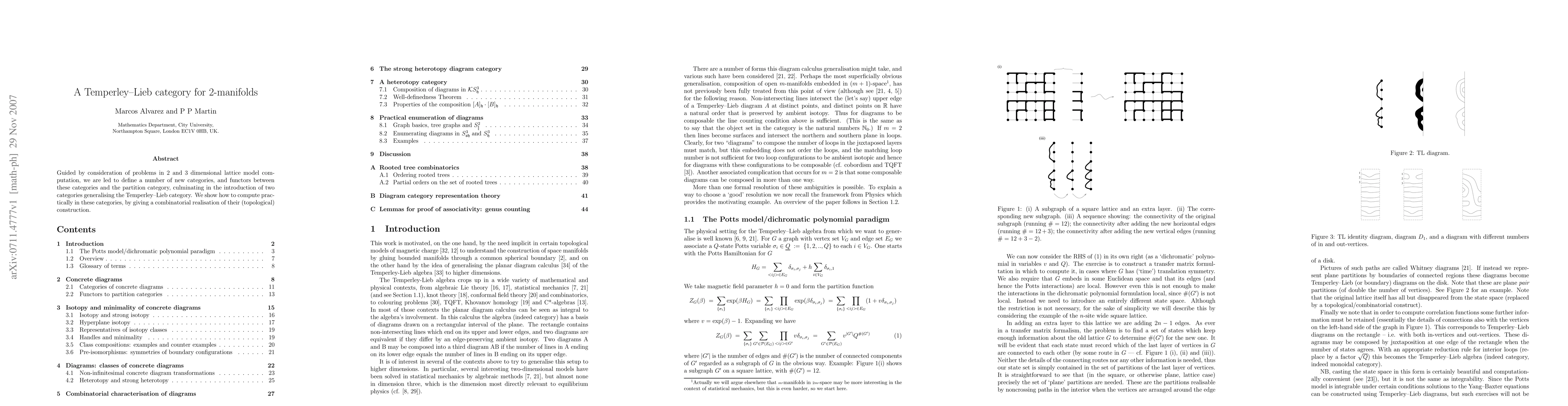 Guided by consideration of problems in 2 and 3 dimensional lattice model computation, we are led to define a number of new categories, and functors between these categories and the partition category, culminating in the introduction of two categories generalising the Temperley-Lieb category. We show how to compute practically in these categories, by giving a combinatorial realisation of their (topological) construction.