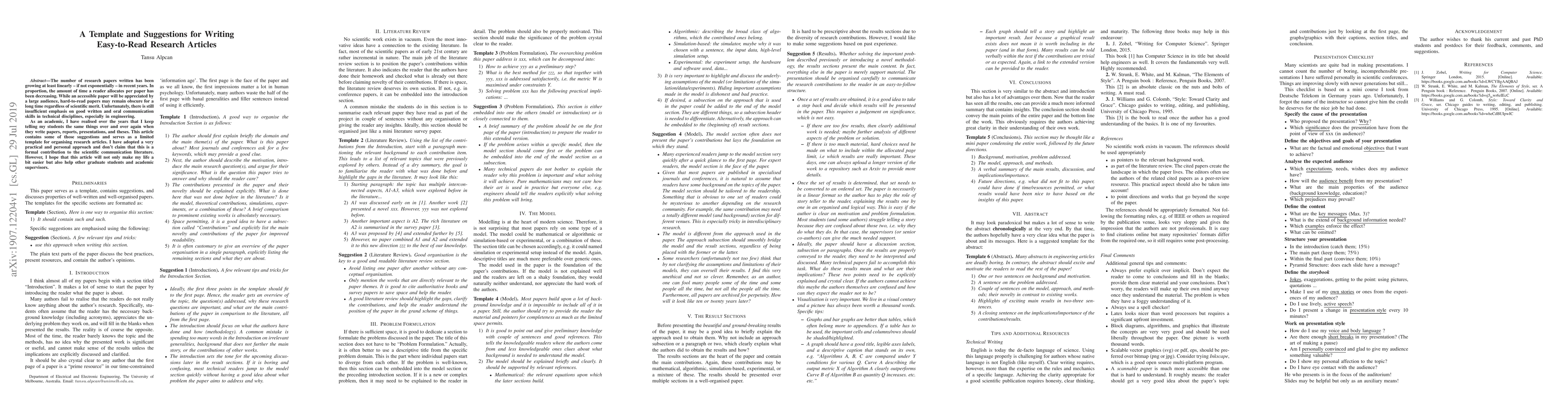 The number of research papers written has been growing at least linearly -- if not exponentially -- in recent years. In proportion, the amount of time a reader allocates per paper has been decreasing. While an accessible paper will be appreciated by a large audience, hard-to-read papers may remain obscure for a long time regardless of scientific merit. Unfortunately, there is still insufficient emphasis on good written and oral communication skills in technical disciplines, especially in engineering. As an academic, I have realised over the years that I keep telling my students the same things over and over again when they write papers, reports, presentations, and theses. This article contains some of those suggestions and serves as a limited template for organising research articles. I have adopted a very practical and personal approach and don't claim that this is a formal contribution to the scientific communication literature. However, I hope that this article will not only make my life a bit easier but also help other graduate students and academic supervisors.
