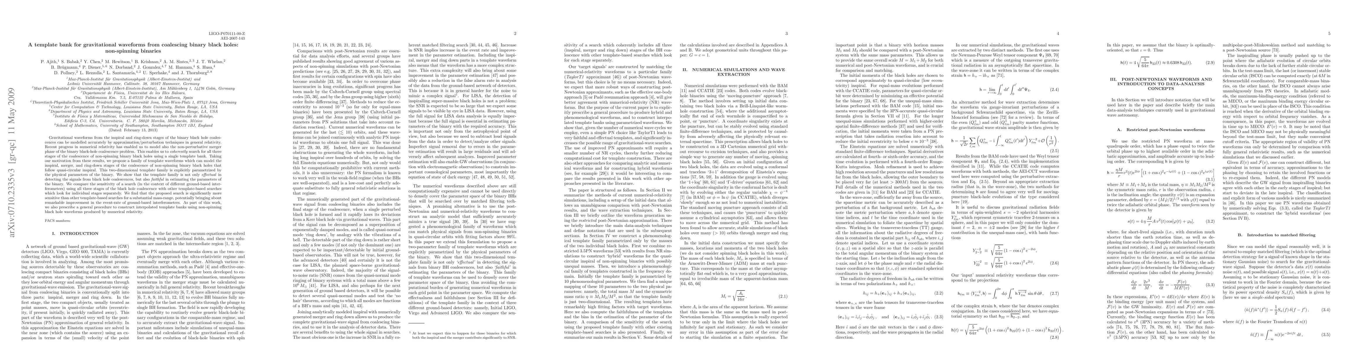 Gravitational waveforms from the inspiral and ring-down stages of the binary black hole coalescences can be modelled accurately by approximation/perturbation techniques in general relativity. Recent progress in numerical relativity has enabled us to model also the non-perturbative merger phase of the binary black-hole coalescence problem. This enables us to \emph{coherently} search for all three stages of the coalescence of non-spinning binary black holes using a single template bank. Taking our motivation from these results, we propose a family of template waveforms which can model the inspiral, merger, and ring-down stages of the coalescence of non-spinning binary black holes that follow quasi-circular inspiral. This two-dimensional template family is explicitly parametrized by the physical parameters of the binary. We show that the template family is not only \emph{effectual} in detecting the signals from black hole coalescences, but also \emph{faithful} in estimating the parameters of the binary. We compare the sensitivity of a search (in the context of different ground-based interferometers) using all three stages of the black hole coalescence with other template-based searches which look for individual stages separately. We find that the proposed search is significantly more sensitive than other template-based searches for a substantial mass-range, potentially bringing about remarkable improvement in the event-rate of ground-based interferometers. As part of this work, we also prescribe a general procedure to construct interpolated template banks using non-spinning black hole waveforms produced by numerical relativity.