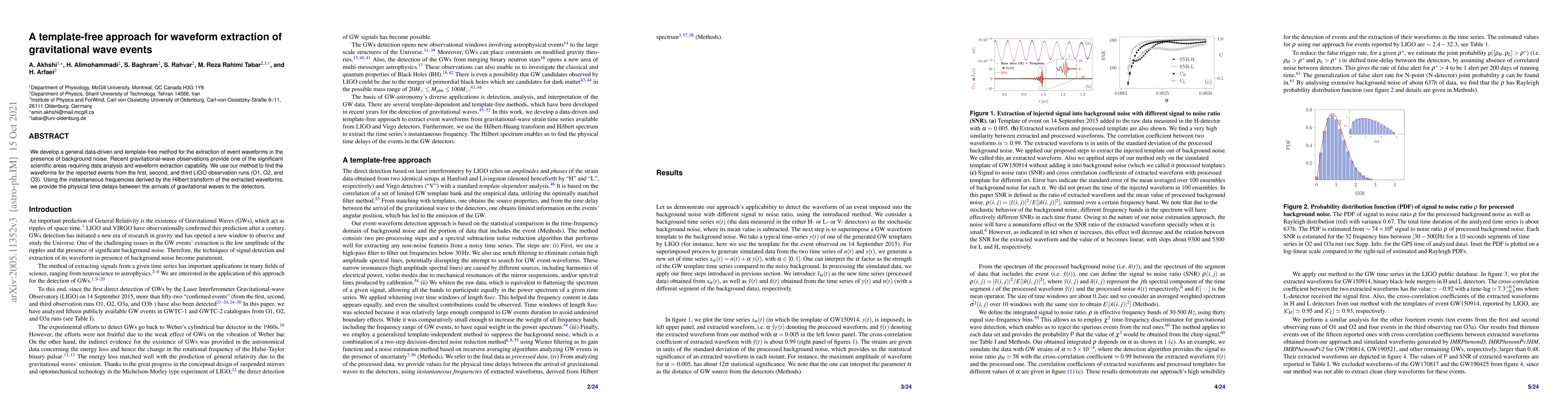 We develop a general data-driven and template-free method for the extraction of event waveforms in the presence of background noise. Recent gravitational-wave observations provide one of the significant scientific areas requiring data analysis and waveform extraction capability. We use our method to find the waveforms for the reported events from the first, second, and third LIGO observation runs (O1, O2, and O3). Using the instantaneous frequencies derived by the Hilbert transform of the extracted waveforms, we provide the physical time delays between the arrivals of gravitational waves to the detectors.