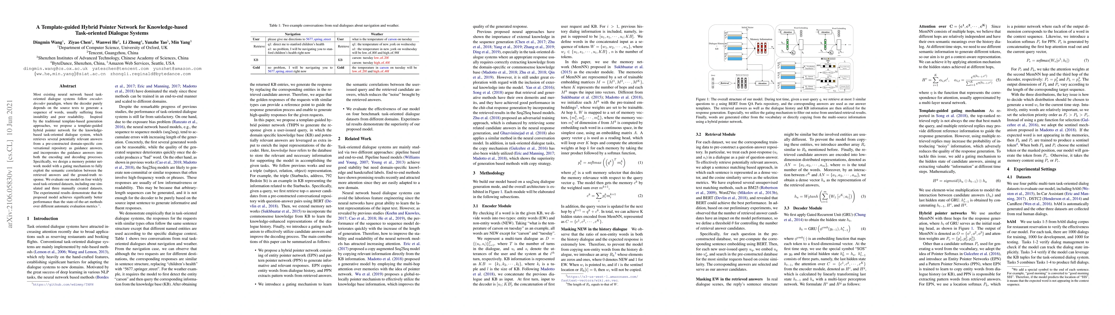 This paper proposes a template-guided hybrid pointer network to enhance knowledge-based task-oriented dialogue systems by integrating retrieved guidance answers from a domain-specific repository into both encoding and decoding processes. The model achieves superior performance compared to state-of-the-art methods across various evaluation metrics.