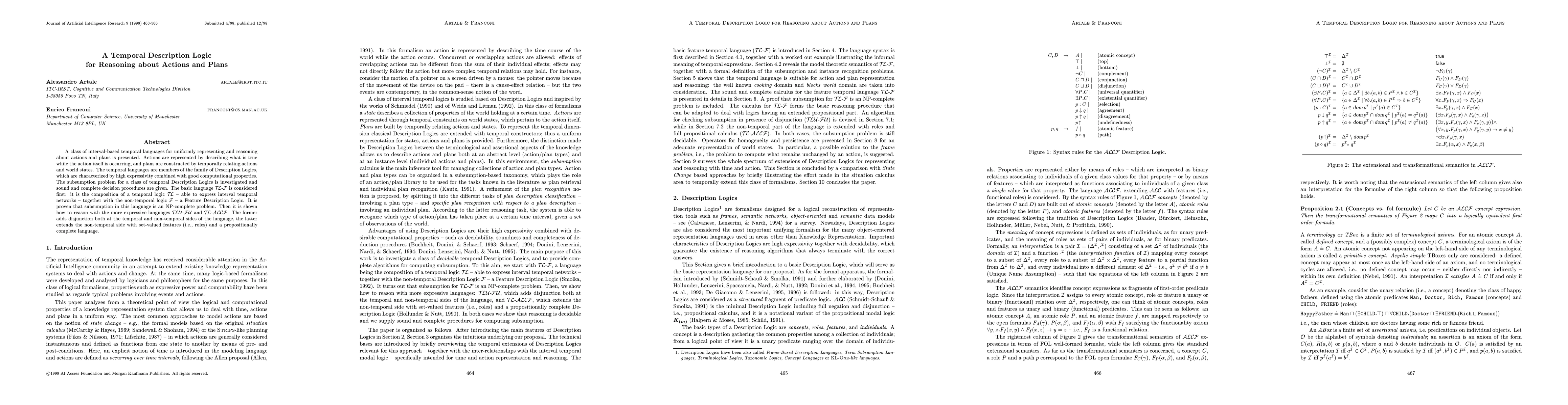 Researchers developed a temporal Description Logic to reason about actions and plans, showcasing expressive power and computational complexity for subsumption problems in various languages.