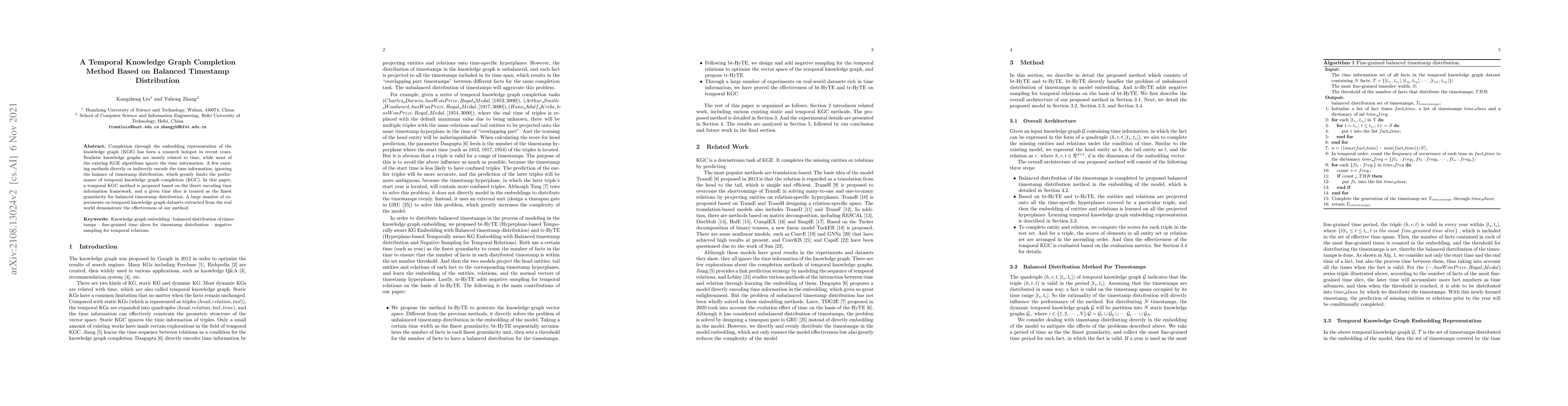 This paper proposes a temporal knowledge graph completion method that directly encodes time information, focusing on balancing the timestamp distribution to enhance performance. Experiments on real-world temporal knowledge graph datasets show that the method effectively improves completion accuracy.