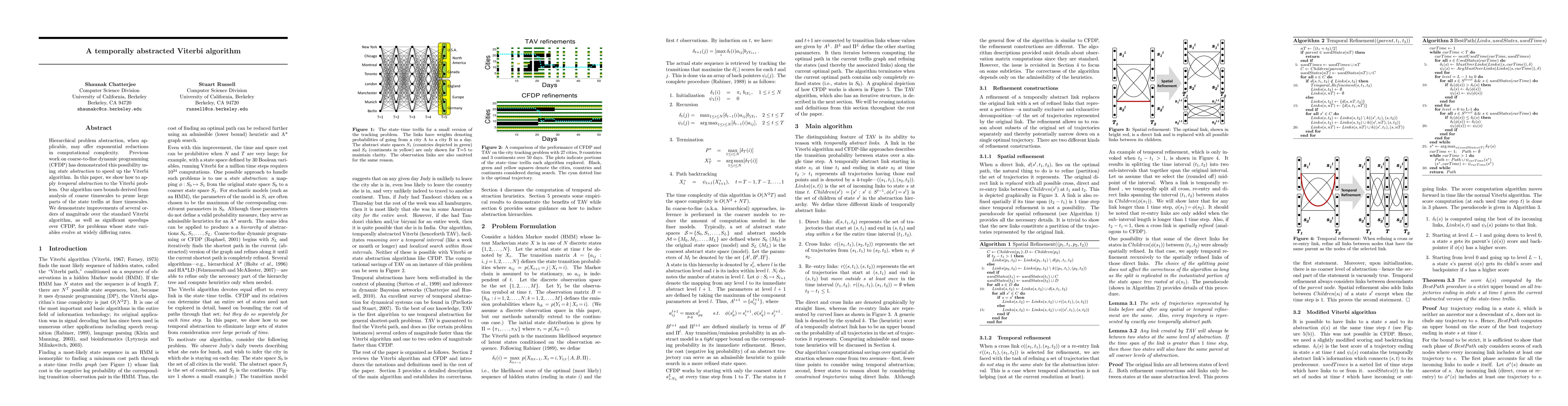 The paper proposes a Temporally Abstracted Viterbi (TAV) algorithm that uses temporal abstraction to prune large parts of the state trellis, significantly reducing computational complexity for problems with state variables evolving at varying rates.