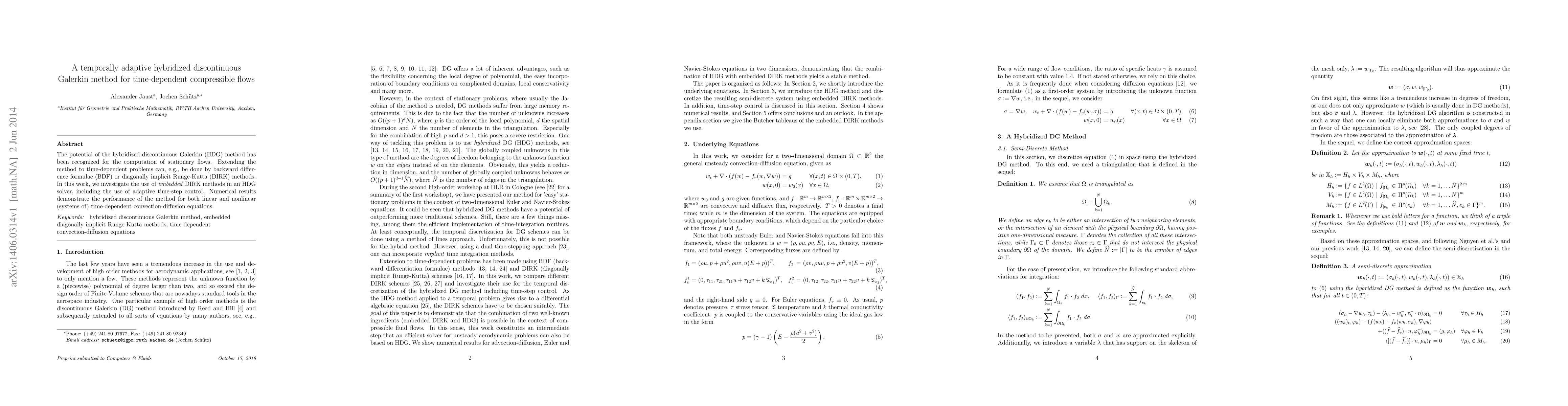 This paper proposes a temporally adaptive hybridized discontinuous Galerkin (HDG) method for solving time-dependent compressible flows, utilizing embedded diagonally implicit Runge-Kutta (DIRK) methods for time integration. The method demonstrates effective performance for both linear and nonlinear convection-diffusion problems.