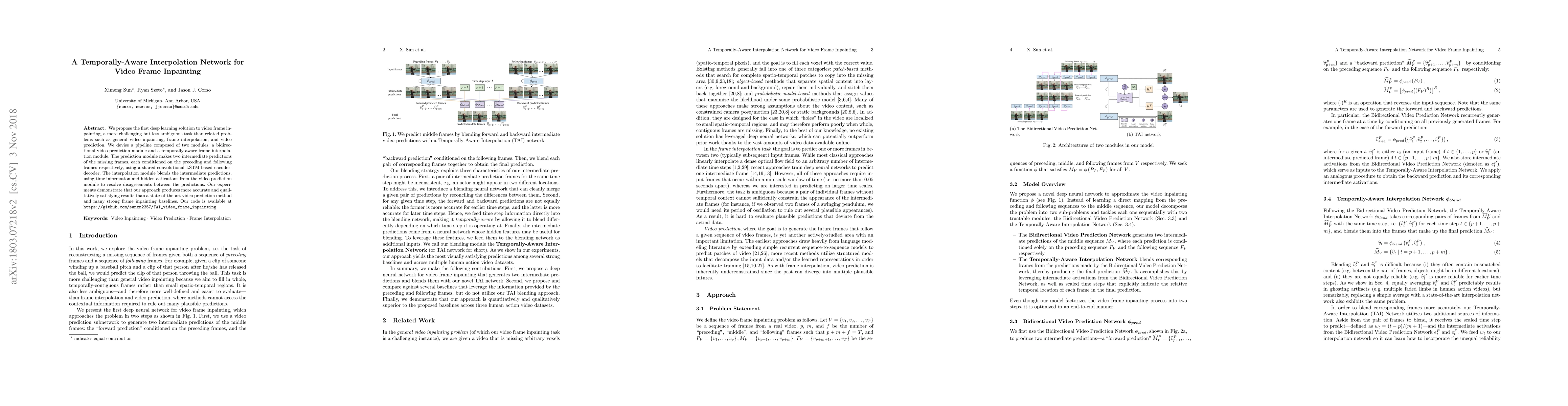 This paper proposes a deep learning solution for video frame inpainting using a bidirectional video prediction module and a temporally-aware frame interpolation module, achieving more accurate results than existing methods by leveraging temporal context and future glimpses.