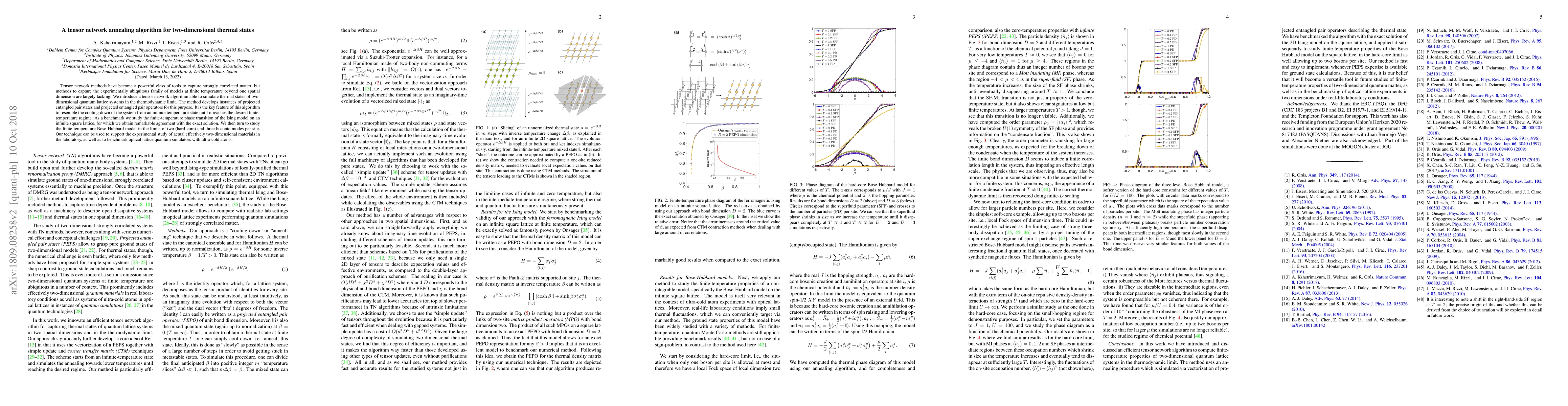 This paper introduces a tensor network algorithm for simulating thermal states in two-dimensional quantum lattice systems, achieving remarkable agreement with exact solutions for the Ising and Bose-Hubbard models. The method mimics the cooling process from infinite to finite temperature, offering potential for experimental studies and quantum simulators.