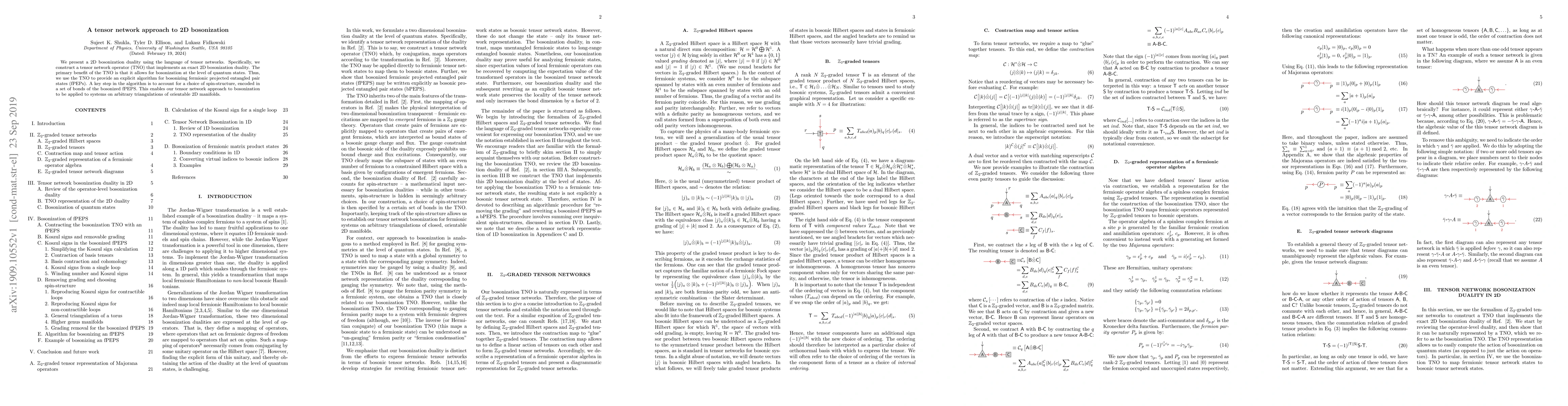This paper introduces a tensor network operator (TNO) for exact 2D bosonization duality, enabling bosonization of fermionic projected entangled pair states (fPEPs). The TNO accounts for spin-structure choices, allowing the method to be applied to systems on any orientable 2D manifold triangulation.
