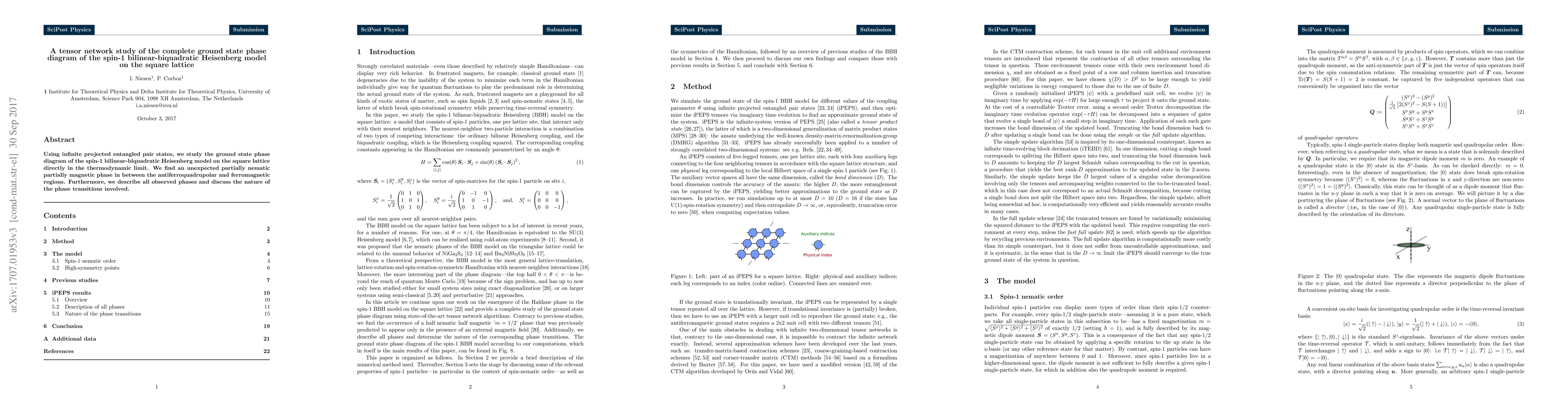 This paper uses tensor networks to explore the ground state phase diagram of the spin-1 bilinear-biquadratic Heisenberg model on a square lattice, revealing an unexpected partially nematic partially magnetic phase between antiferroquadrupolar and ferromagnetic regions, and discusses the nature of these transitions.