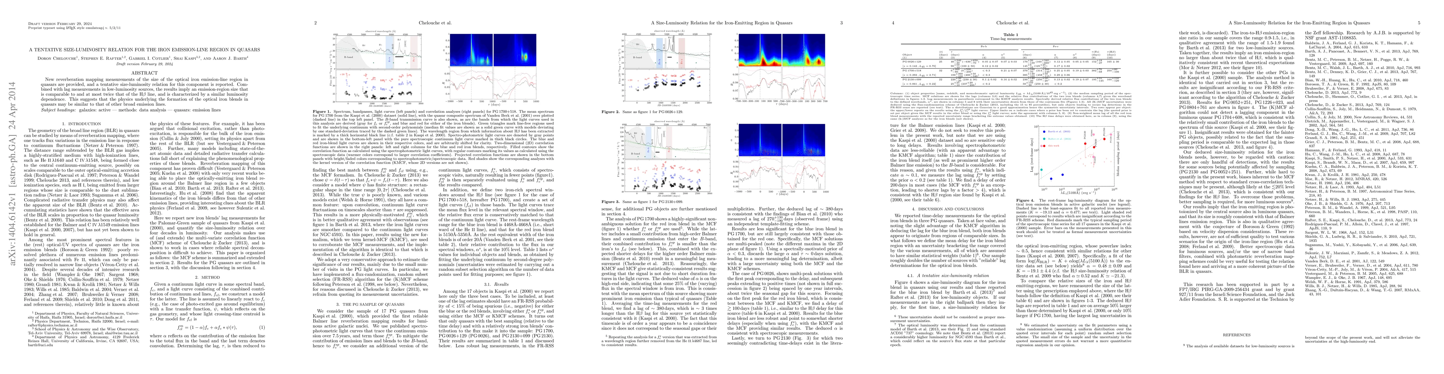 New reverberation mapping measurements of the size of the optical iron emission-line region in quasars are provided, and a tentative size-luminosity relation for this component is reported. Combined with lag measurements in low-luminosity sources, the results imply an emission-region size that is comparable to and at most twice that of the H$\beta$ line, and is characterized by a similar luminosity dependence. This suggests that the physics underlying the formation of the optical iron blends in quasars may be similar to that of other broad emission lines.