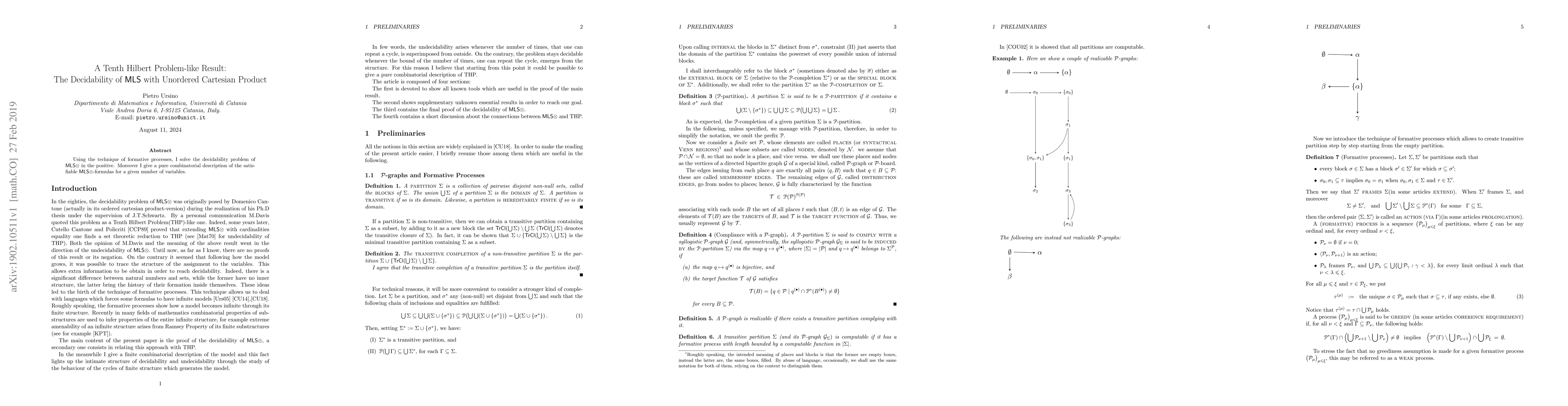 This research paper solves the decidability problem for MLS (Many-Literal Solvable) with unordered Cartesian product in the positive, providing a combinatorial description of satisfiable formulas for a given number of variables.