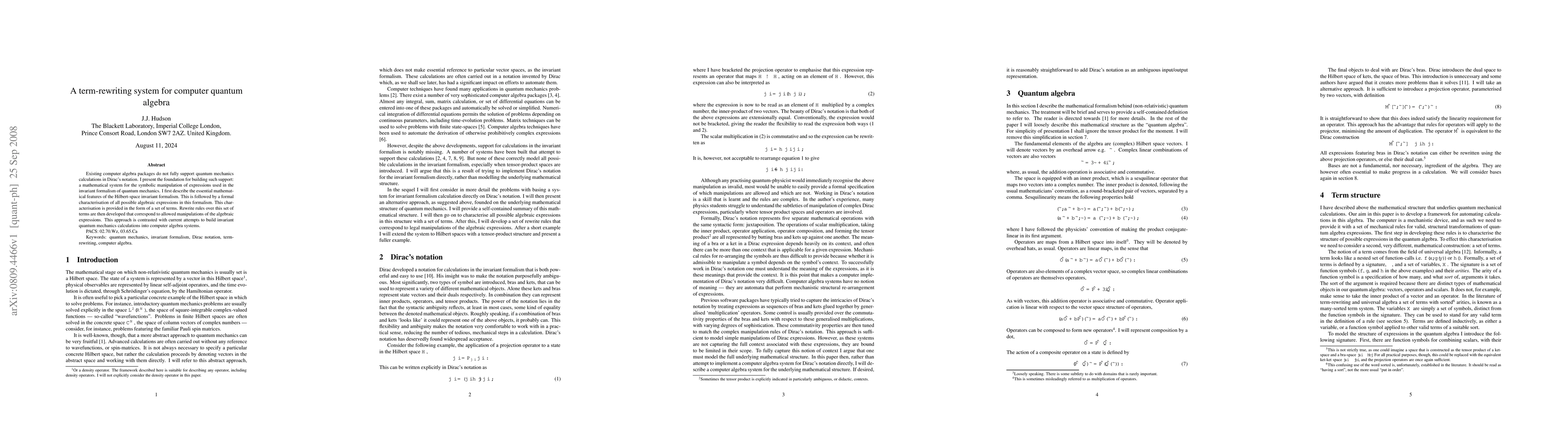 The research presents a term-rewriting system (TRS) for symbolic manipulation of expressions in quantum mechanics, specifically in Dirac's notation, which current computer algebra systems lack full support for.