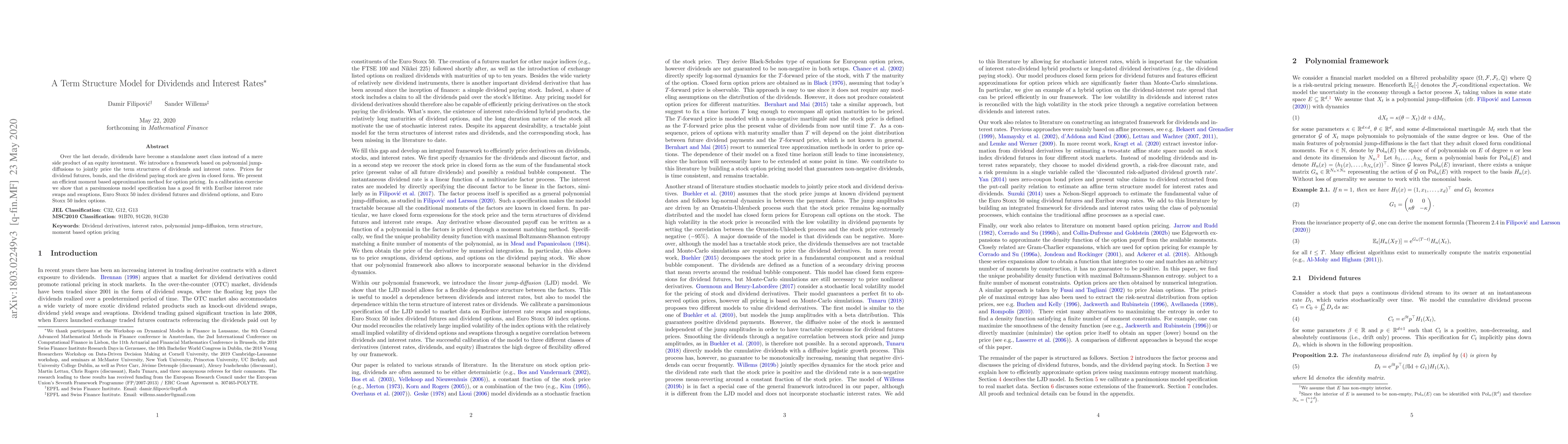Over the last decade, dividends have become a standalone asset class instead of a mere side product of an equity investment. We introduce a framework based on polynomial jump-diffusions to jointly price the term structures of dividends and interest rates. Prices for dividend futures, bonds, and the dividend paying stock are given in closed form. We present an efficient moment based approximation method for option pricing. In a calibration exercise we show that a parsimonious model specification has a good fit with Euribor interest rate swaps and swaptions, Euro Stoxx 50 index dividend futures and dividend options, and Euro Stoxx 50 index options.