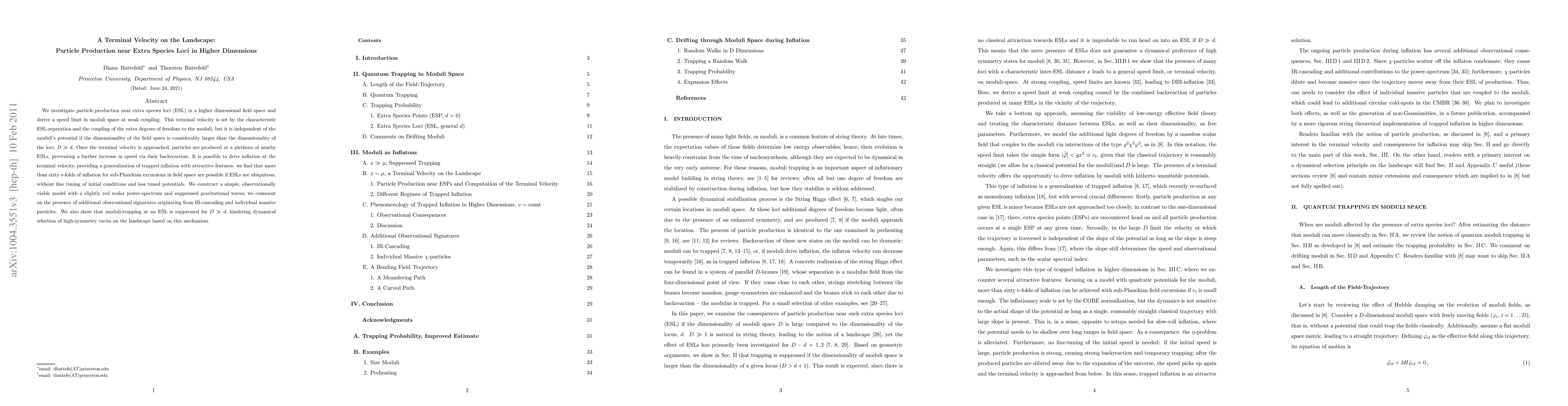 We investigate particle production near extra species loci (ESL) in a higher dimensional field space and derive a speed limit in moduli space at weak coupling. This terminal velocity is set by the characteristic ESL-separation and the coupling of the extra degrees of freedom to the moduli, but it is independent of the moduli's potential if the dimensionality of the field space is considerably larger than the dimensionality of the loci, D >> d. Once the terminal velocity is approached, particles are produced at a plethora of nearby ESLs, preventing a further increase in speed via their backreaction. It is possible to drive inflation at the terminal velocity, providing a generalization of trapped inflation with attractive features: we find that more than sixty e-folds of inflation for sub-Planckian excursions in field space are possible if ESLs are ubiquitous, without fine tuning of initial conditions and less tuned potentials. We construct a simple, observationally viable model with a slightly red scalar power-spectrum and suppressed gravitational waves; we comment on the presence of additional observational signatures originating from IR-cascading and individual massive particles. We also show that moduli-trapping at an ESL is suppressed for D >> d, hindering dynamical selection of high-symmetry vacua on the landscape based on this mechanism.