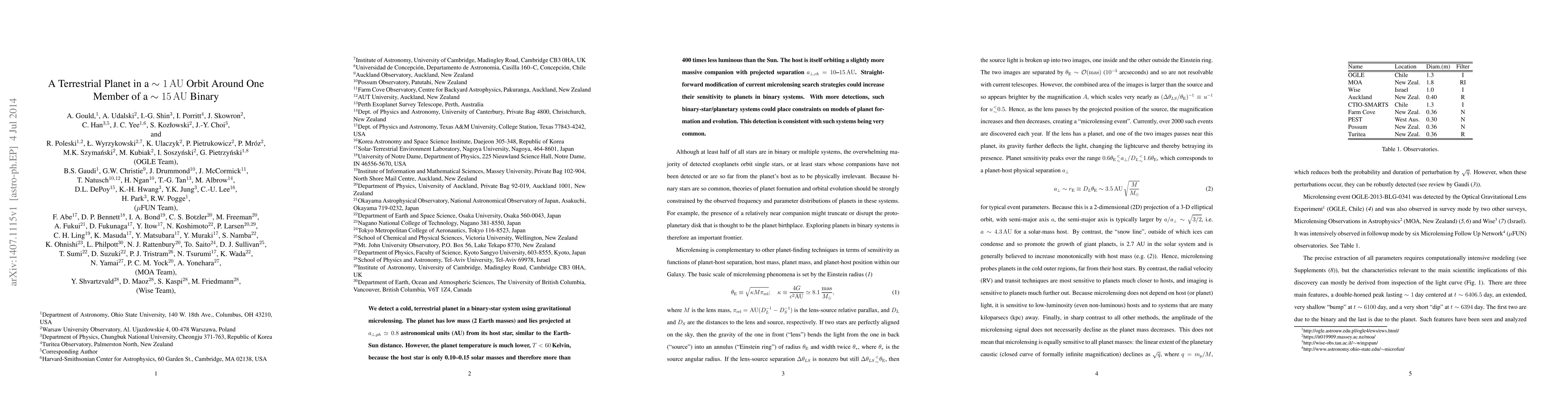 A gravitational microlensing study detected a cold terrestrial planet with 2 Earth masses orbiting a low-mass star 0.8 AU away, though its temperature is below 60 Kelvin due to the star's low luminosity. This planet's discovery suggests that planets in binary-star systems may be common, prompting calls for enhanced microlensing strategies to detect more such systems.