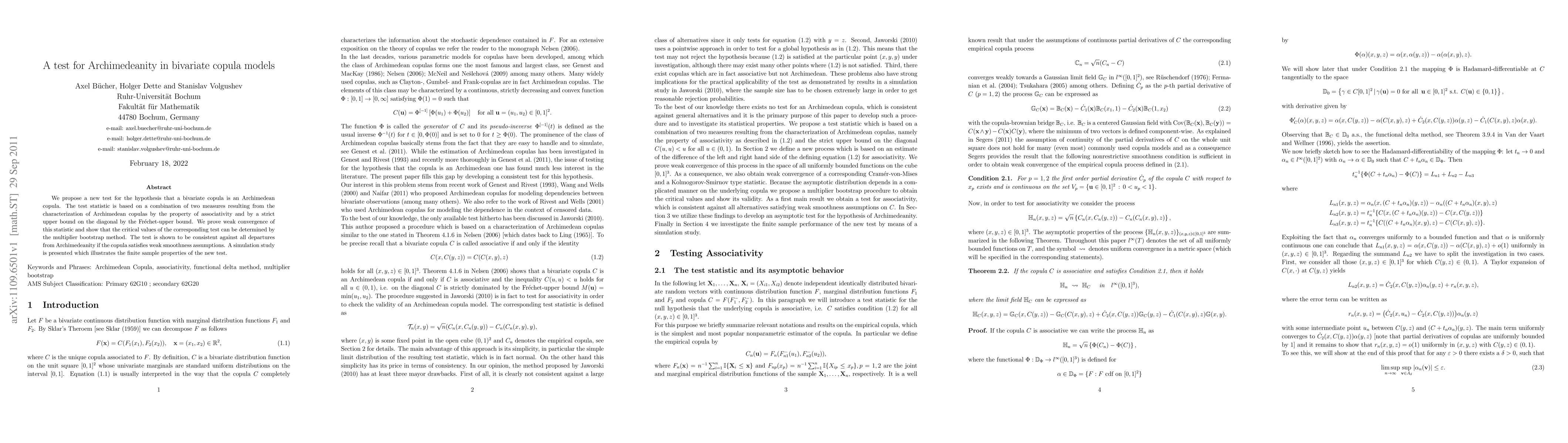 The paper introduces a new test for Archimedeanity in bivariate copula models, combining associativity and the Fréchet-upper bound, with proven consistency and a multiplier bootstrap method for determining critical values.