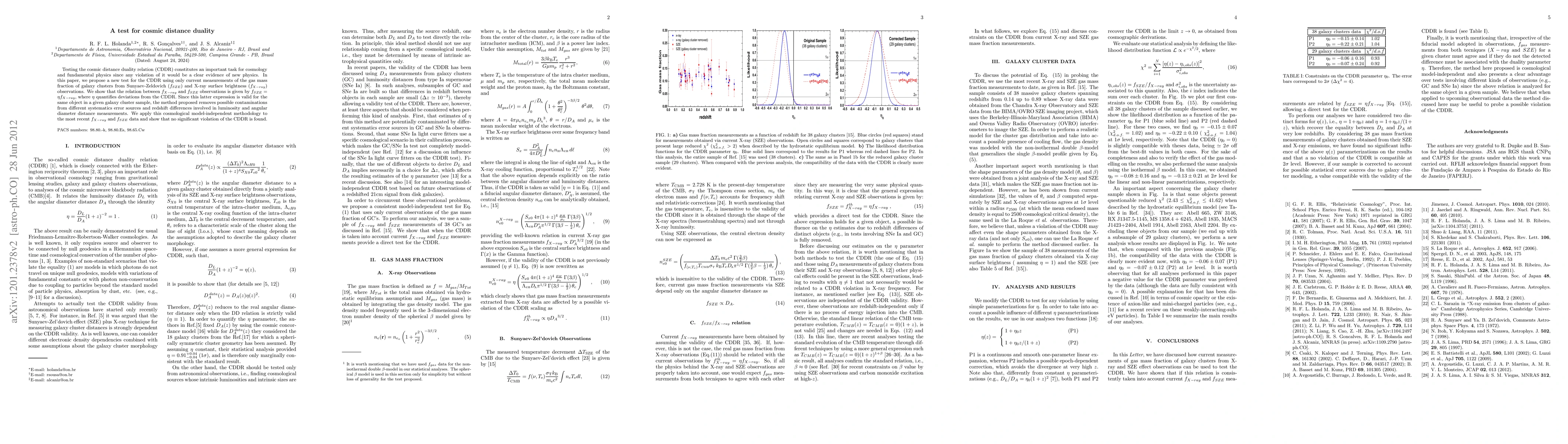 Researchers propose a new test for cosmic distance duality using galaxy cluster gas mass fraction observations, finding no significant violation of the relation.