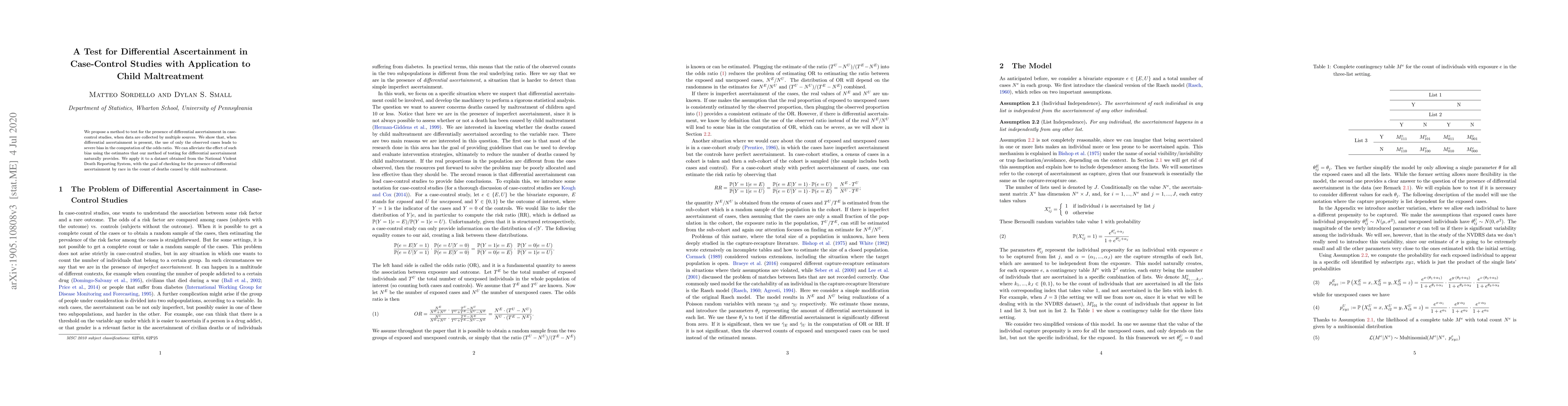 This study proposes a method to detect differential ascertainment bias in case-control studies, which can lead to severe errors in odds ratio computation. It successfully applies the method to identify potential biases in child maltreatment data by race.