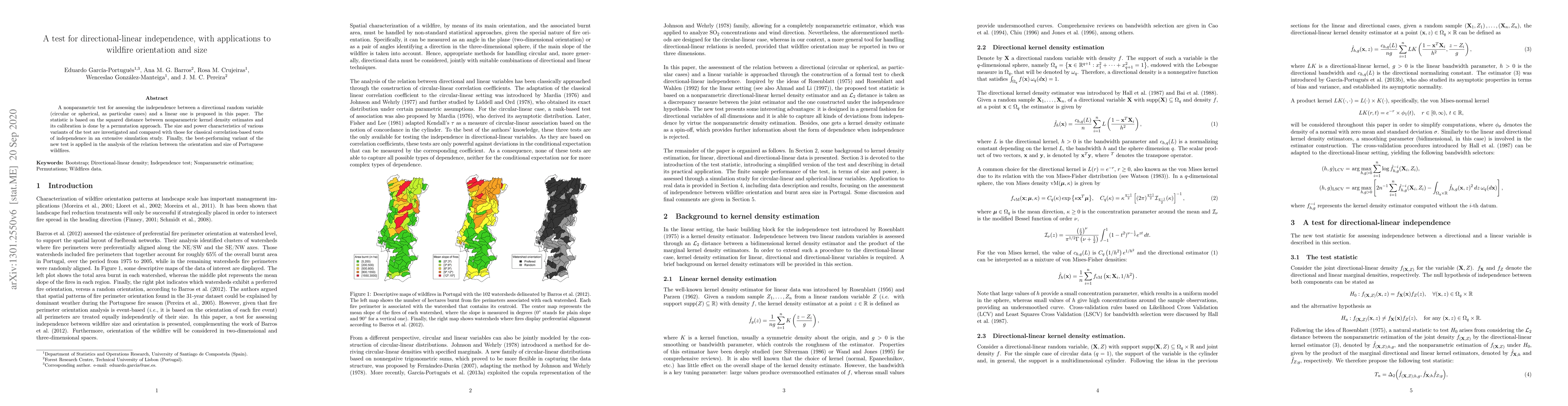 This paper proposes a nonparametric test for directional-linear independence to analyze the relationship between wildfire orientation and size, using a directional-linear kernel density estimator. The test's performance is evaluated through simulations and applied to wildfire data from Portugal.