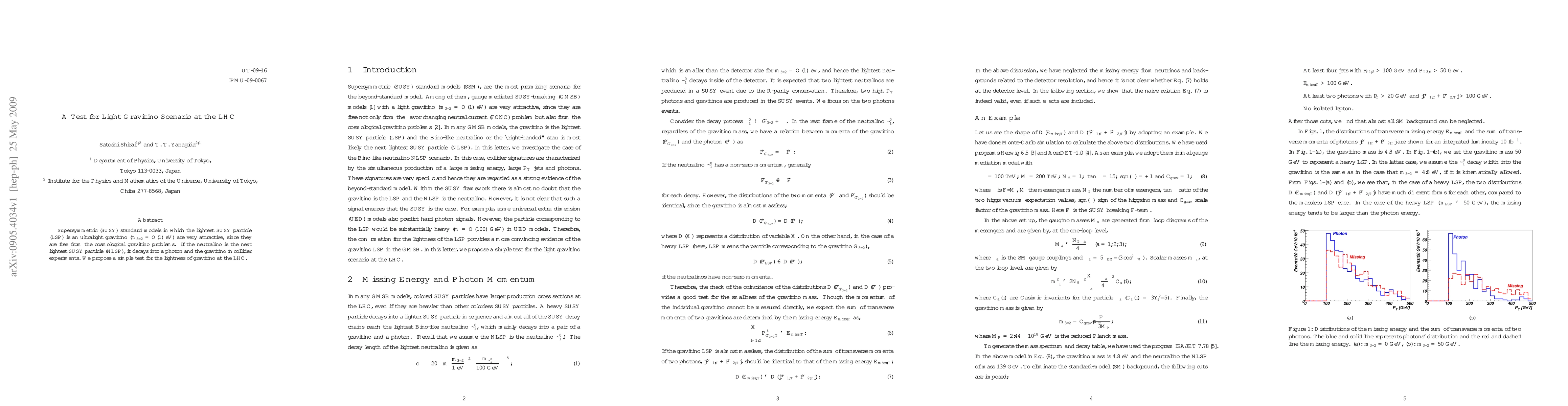 Supersymmetric (SUSY) standard models in which the lightest SUSY particle (LSP) is an ultralight gravitino (m_{3/2}=O(1) eV) are very attractive, since they are free from the cosmological gravitino problems. If the neutralino is the next lightest SUSY particle (NLSP), it decays into a photon and the gravitino in collider experiments. We propose a simple test for the lightness of gravitino at the LHC.