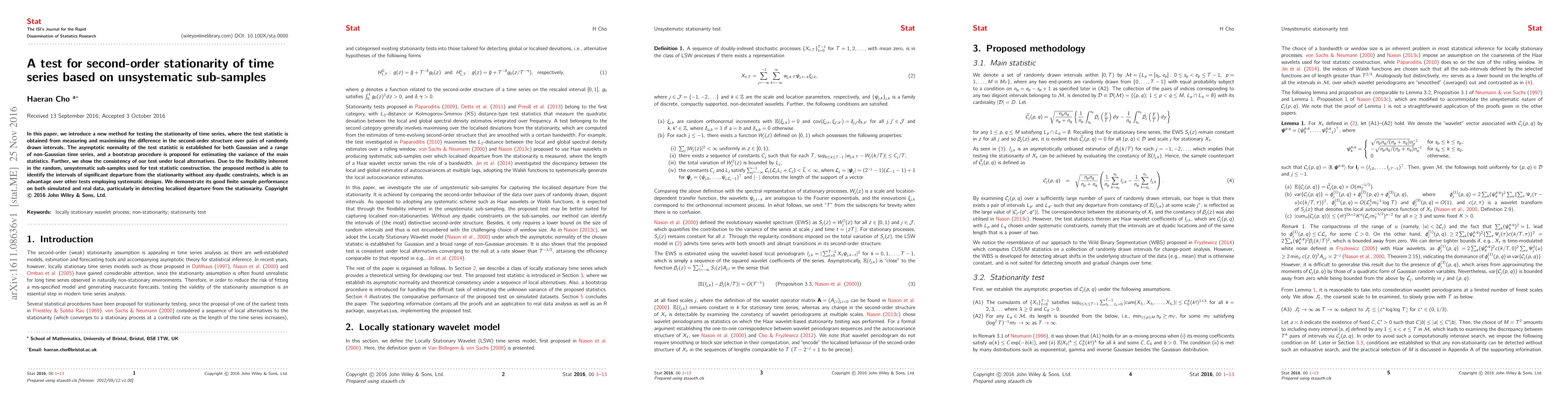 This paper proposes a new test for second-order stationarity in time series using unsystematic sub-samples, establishing its asymptotic normality and consistency. The method identifies localised departures from stationarity without dyadic constraints, demonstrating good performance in finite samples.