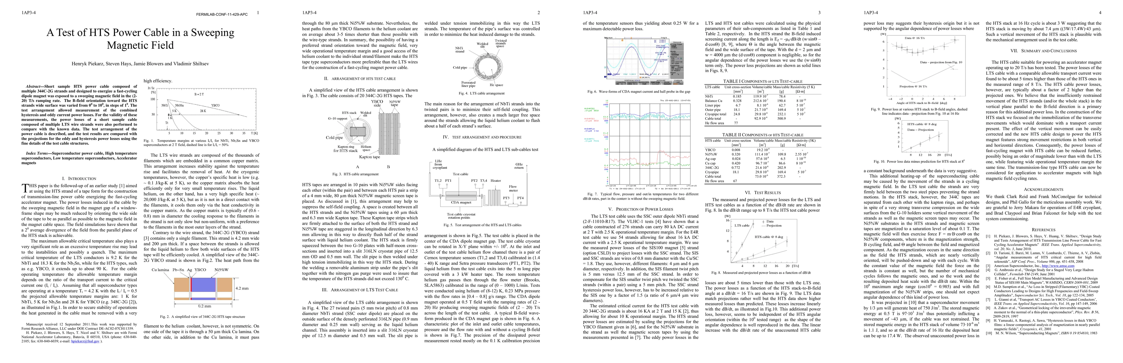 This study tests a short HTS power cable in a rapidly changing magnetic field, measuring hysteresis and eddy current losses. Comparative tests on a conventional LTS cable validate the methodology, and results are analyzed against theoretical projections based on cable structure details.