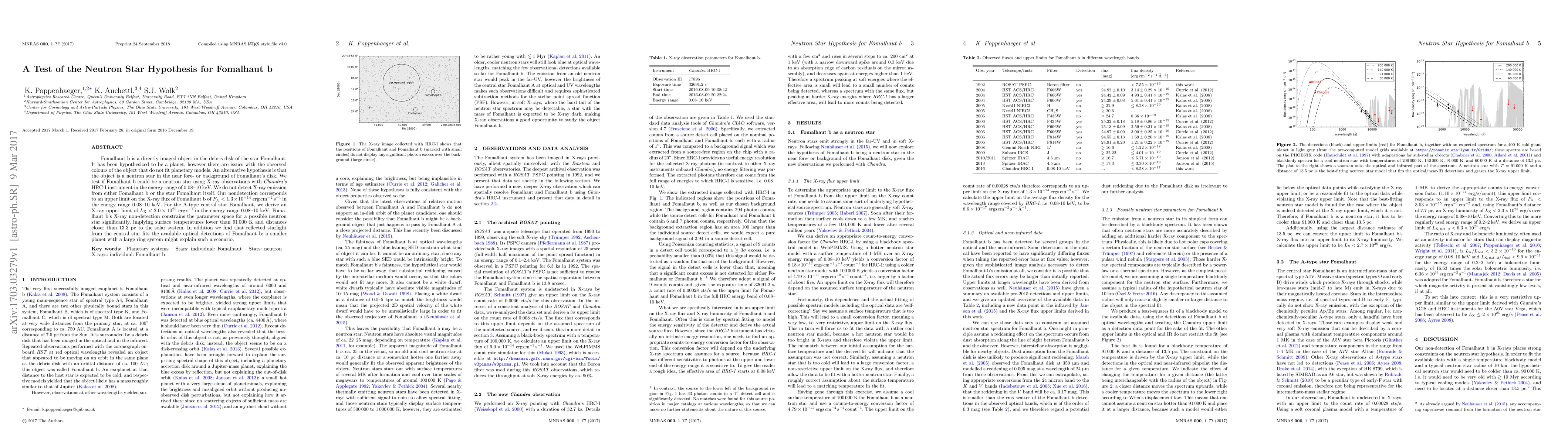 This paper tests the neutron star hypothesis for Fomalhaut b using X-ray observations, finding no X-ray emission, which constrains its temperature and distance. The findings suggest that Fomalhaut b is more likely a smaller planet with a large ring system.