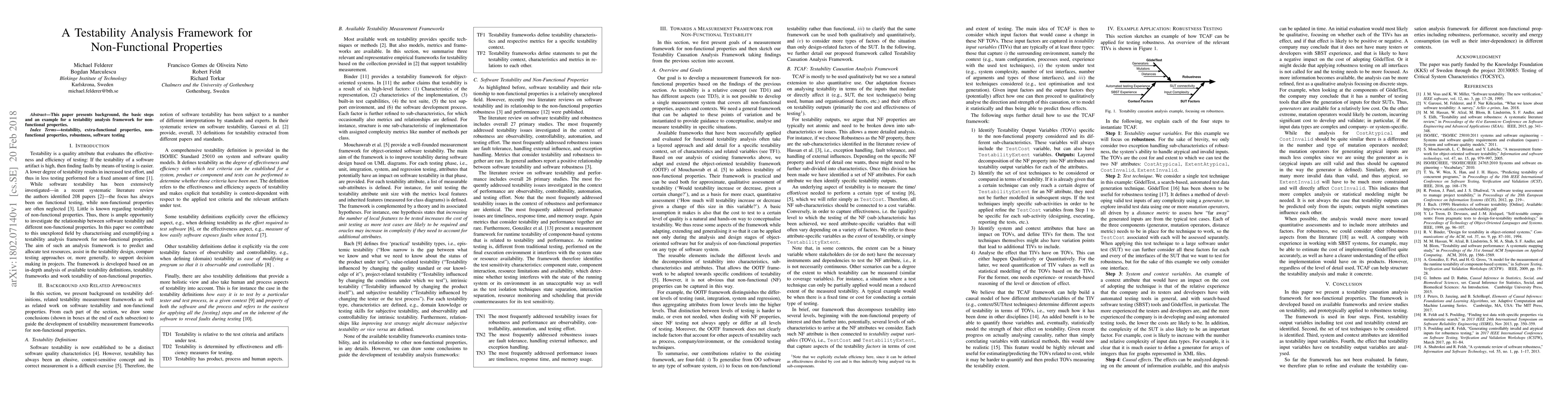 This paper presents background, the basic steps and an example for a testability analysis framework for non-functional properties.