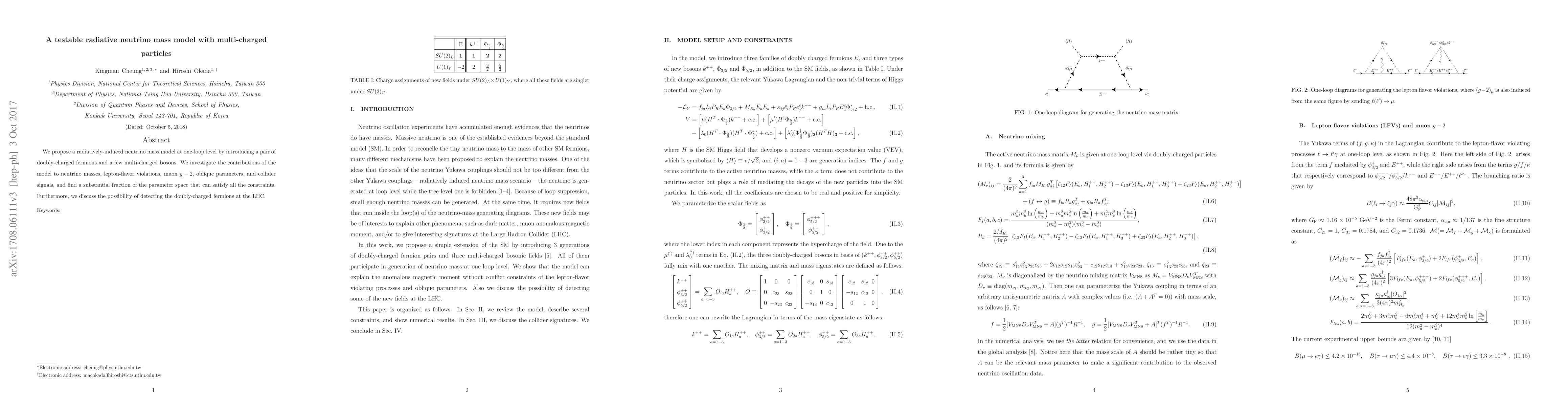 This paper proposes a radiative neutrino mass model with doubly-charged fermions and multi-charged bosons, exploring its implications for neutrino masses, lepton-flavor violations, muon $g-2$, and collider signals. It finds significant parameter space that meets all constraints and discusses the potential detection of these fermions at the LHC.