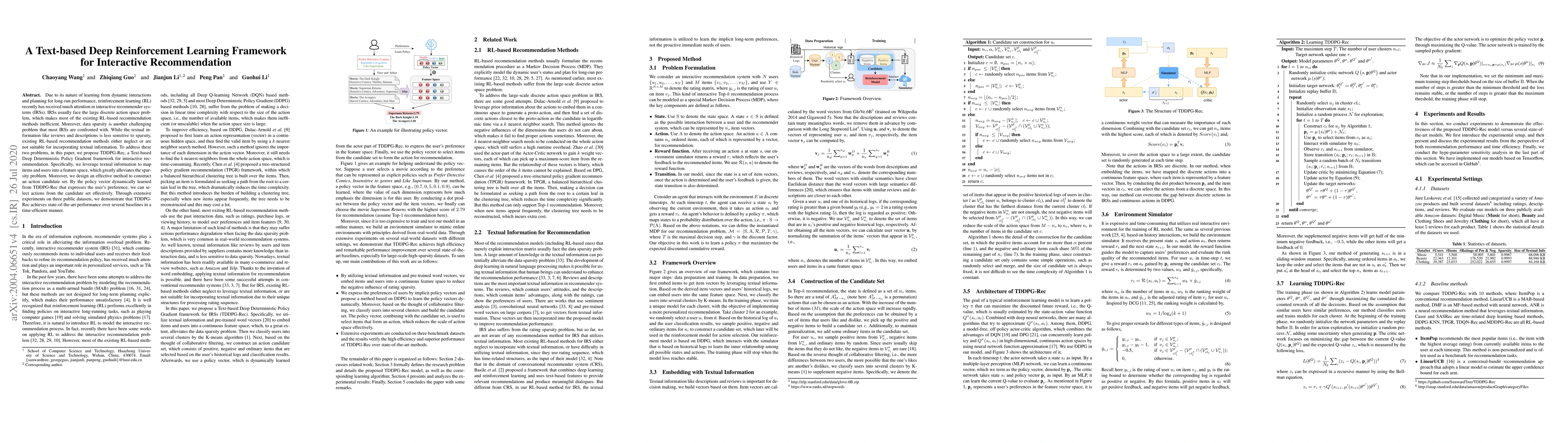 This paper proposes a Text-based Deep Deterministic Policy Gradient framework (TDDPG-Rec) for interactive recommender systems to tackle large discrete action spaces and data sparsity. It leverages textual information to map users and items into a feature space, enhancing recommendation efficiency.