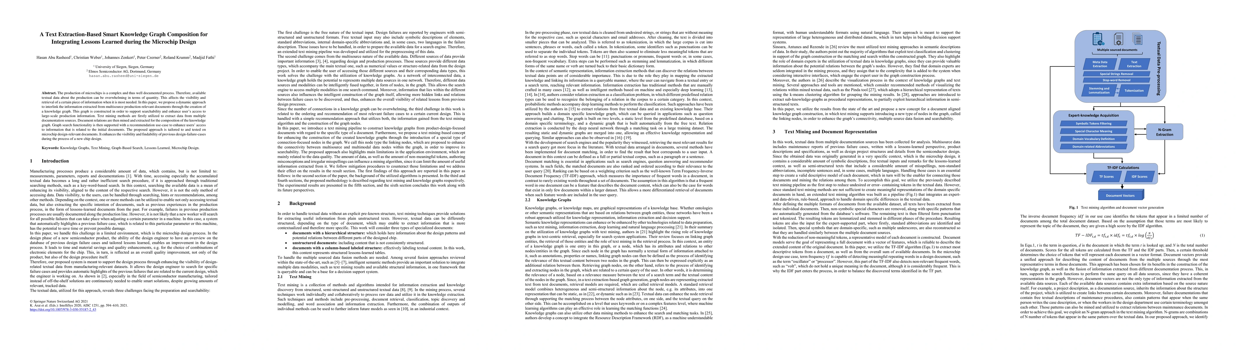 The production of microchips is a complex and thus well documented process. Therefore, available textual data about the production can be overwhelming in terms of quantity. This affects the visibility and retrieval of a certain piece of information when it is most needed. In this paper, we propose a dynamic approach to interlink the information extracted from multisource production-relevant documents through the creation of a knowledge graph. This graph is constructed in order to support searchability and enhance user's access to large-scale production information. Text mining methods are firstly utilized to extract data from multiple documentation sources. Document relations are then mined and extracted for the composition of the knowledge graph. Graph search functionality is then supported with a recommendation use-case to enhance users' access to information that is related to the initial documents. The proposed approach is tailored to and tested on microchip design-relevant documents. It enhances the visibility and findability of previous design-failure-cases during the process of a new chip design.