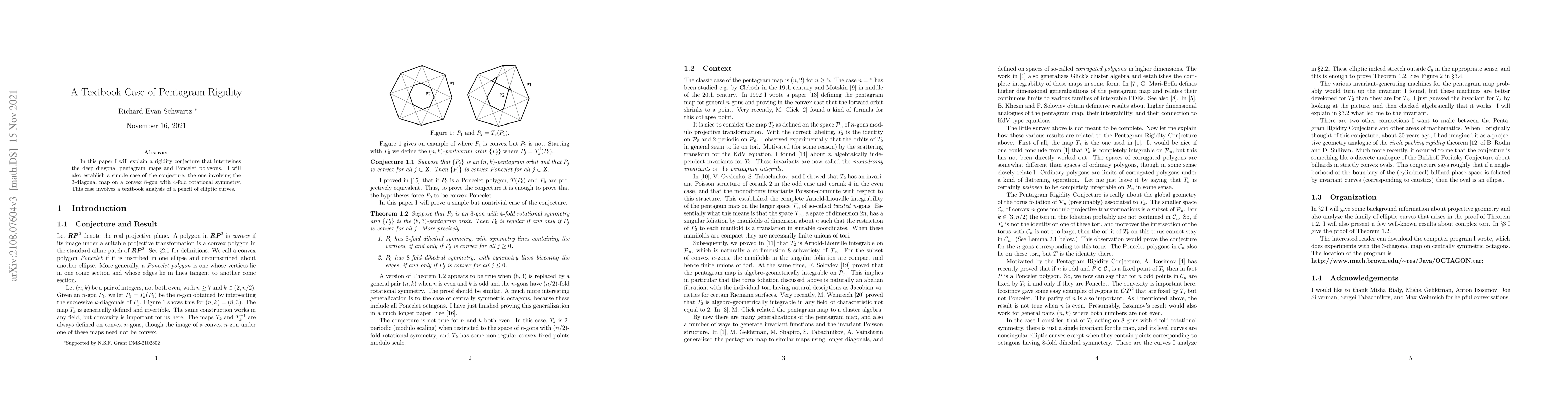 In this paper I will explain a rigidity conjecture that intertwines the deep diagonal pentagram maps and Poncelet polygons. I will also establish a simple case of the conjecture, the one involving the $3$-diagonal map on a convex $8$-gon with $4$-fold rotational symmetry. This case involves a textbook analysis of a pencil of elliptic curves.