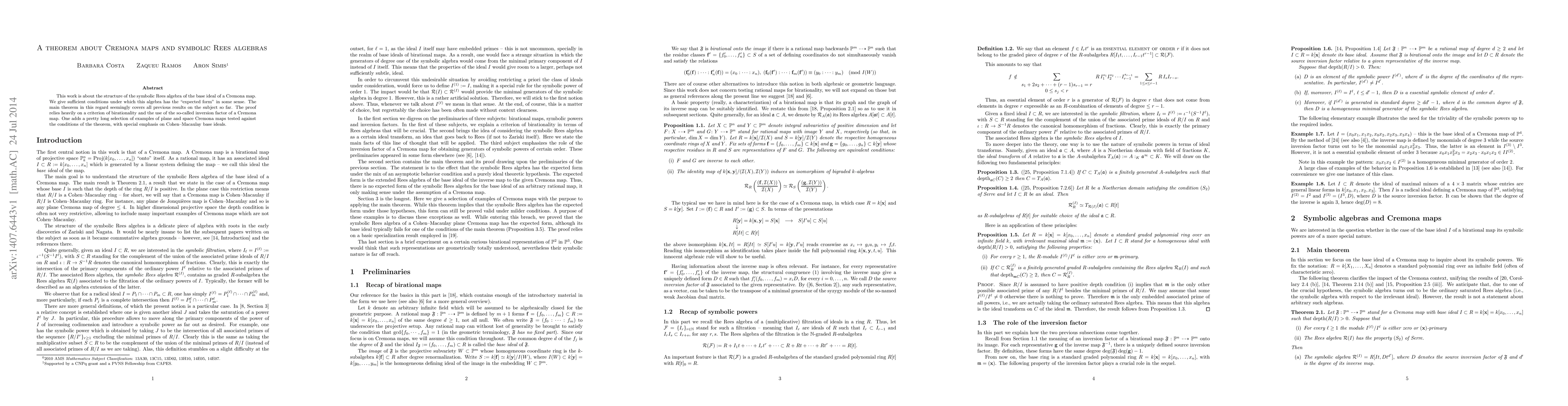 This paper establishes sufficient conditions for the symbolic Rees algebra of a Cremona map's base ideal to have an "expected form," encompassing prior results. The proof leverages birationality criteria and the inversion factor of Cremona maps, supplemented by numerous examples illustrating the theorem's applicability.