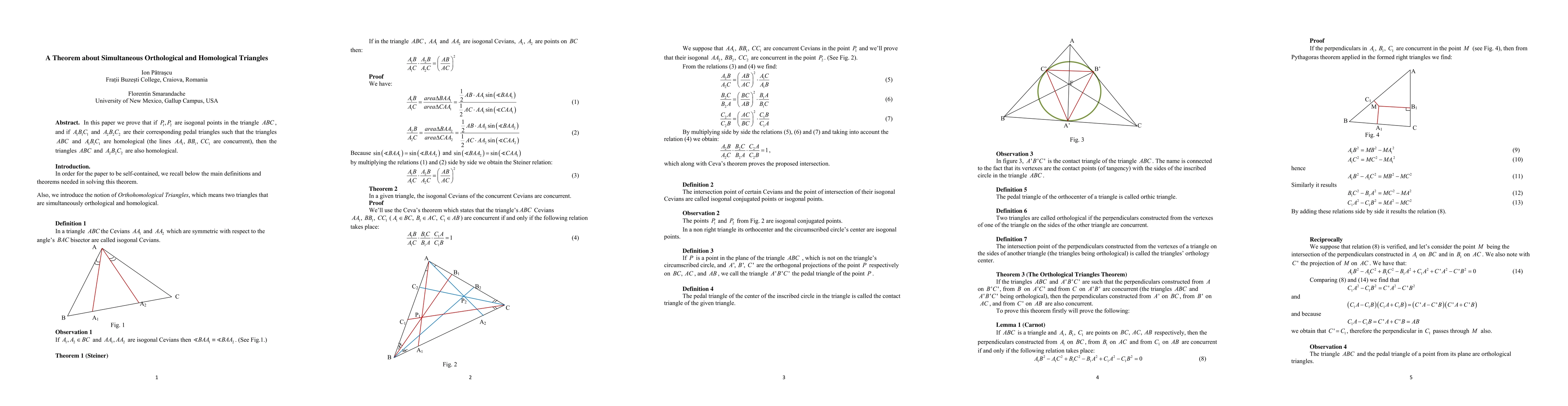 This paper proves that if two isogonal points in triangle $ABC$ form corresponding pedal triangles $A_1B_1C_1$ and $A_2B_2C_2$, with $ABC$ and $A_1B_1C_1$ being homological, then $ABC$ and $A_2B_2C_2$ are also homological.