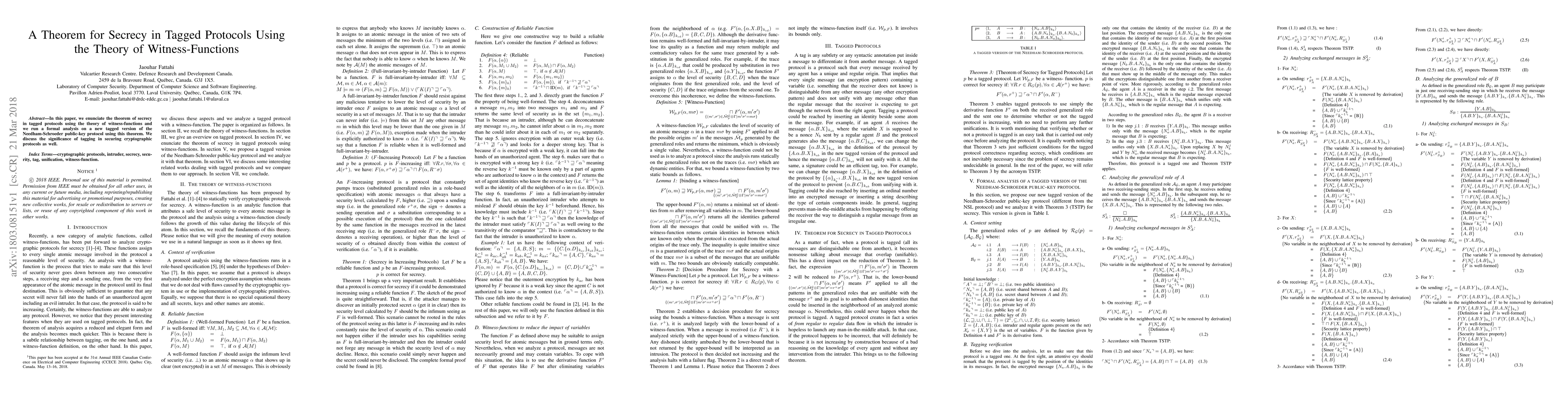 This paper presents a theorem for secrecy in tagged protocols utilizing the theory of witness-functions, and applies this theorem to a new tagged version of the Needham-Schroeder public-key protocol, highlighting the importance of tagging in enhancing cryptographic protocol security.