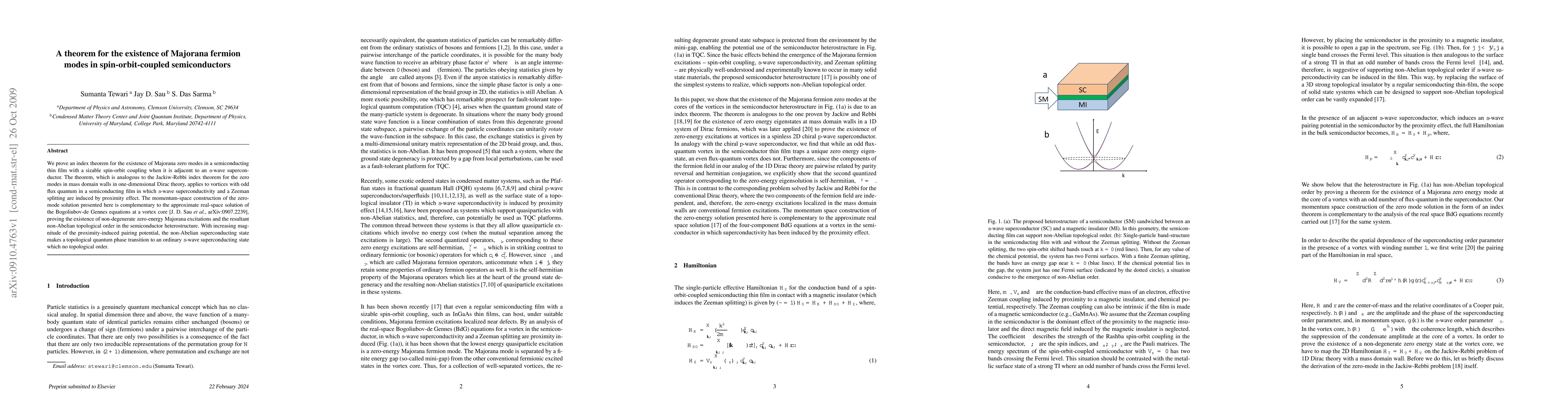 This paper proves an index theorem for Majorana fermion modes in spin-orbit-coupled semiconducting thin films adjacent to s-wave superconductors, demonstrating the existence of non-degenerate zero-energy Majorana excitations and non-Abelian topological order, transitioning to an ordinary superconducting state with increasing pairing potential.