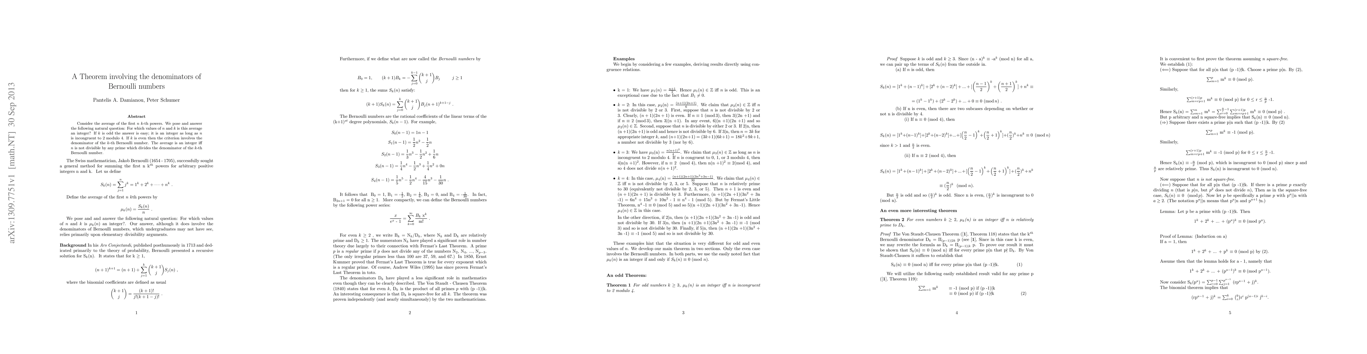 Consider the average of the first n k-th powers. We pose and answer the following natural question: For which values of n and k is this average an integer? If k is odd the answer is easy; it is an integer as long as n is incongruent to 2 modulo 4. If k is even then the criterion involves the denominator of the k-th Bernoulli number. The average is an integer iff $n$ is not divisible by any prime which divides the denominator of the k-th Bernoulli number.