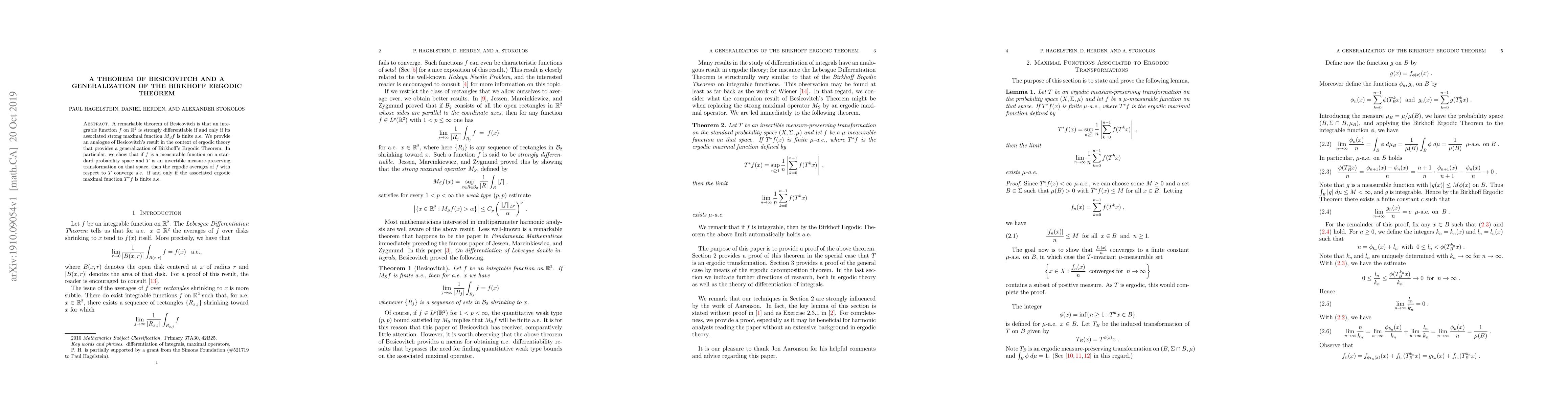 This paper generalizes Besicovitch's theorem on the strong differentiability of integrable functions to ergodic theory, showing that ergodic averages of measurable functions converge almost everywhere if and only if their associated ergodic maximal function is finite almost everywhere.