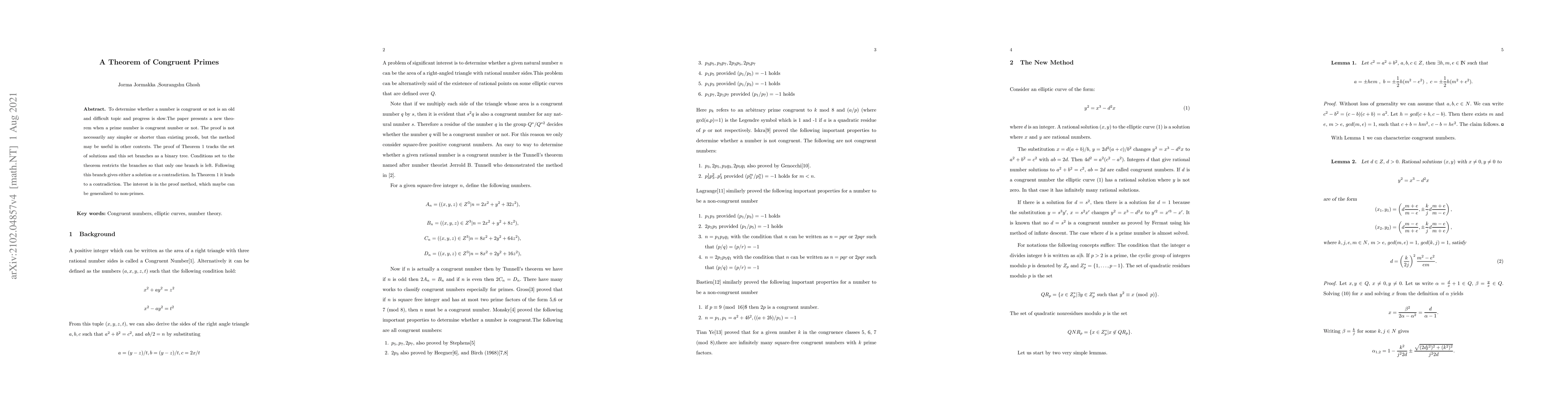 Researchers present a new theorem to determine whether a prime number is congruent or not, using a unique proof method that branches into possible solutions and contradictions.