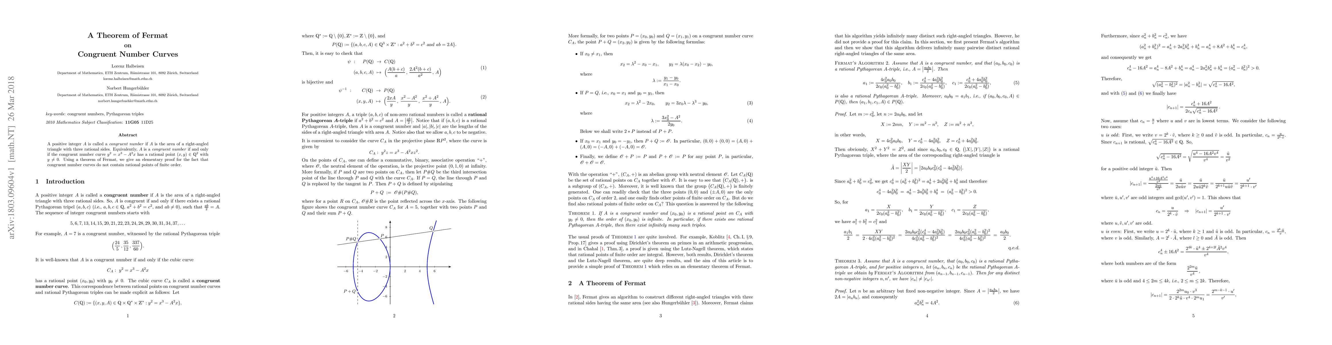The research made a significant technical contribution by providing a new method for generating congruent number curves with rational points.